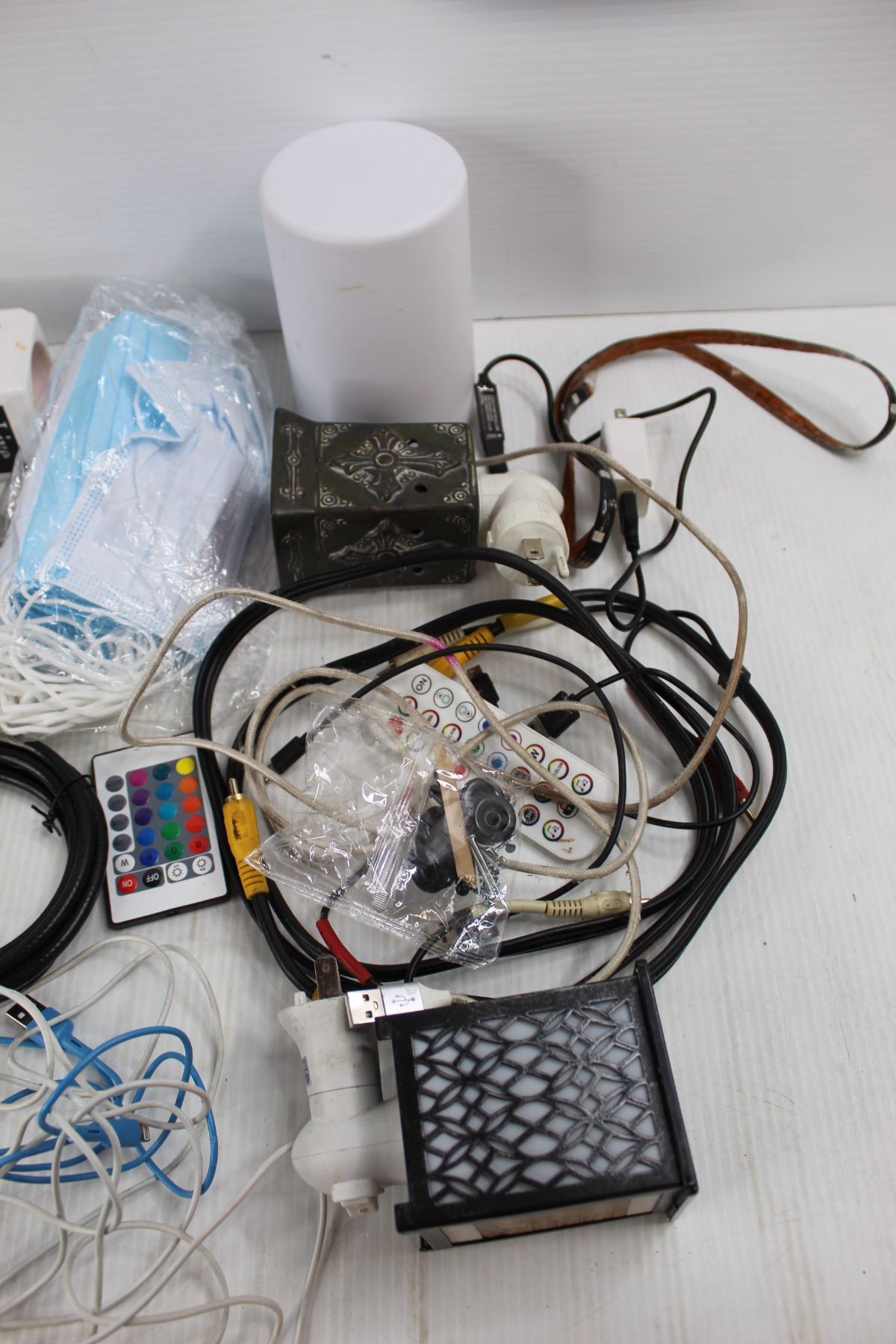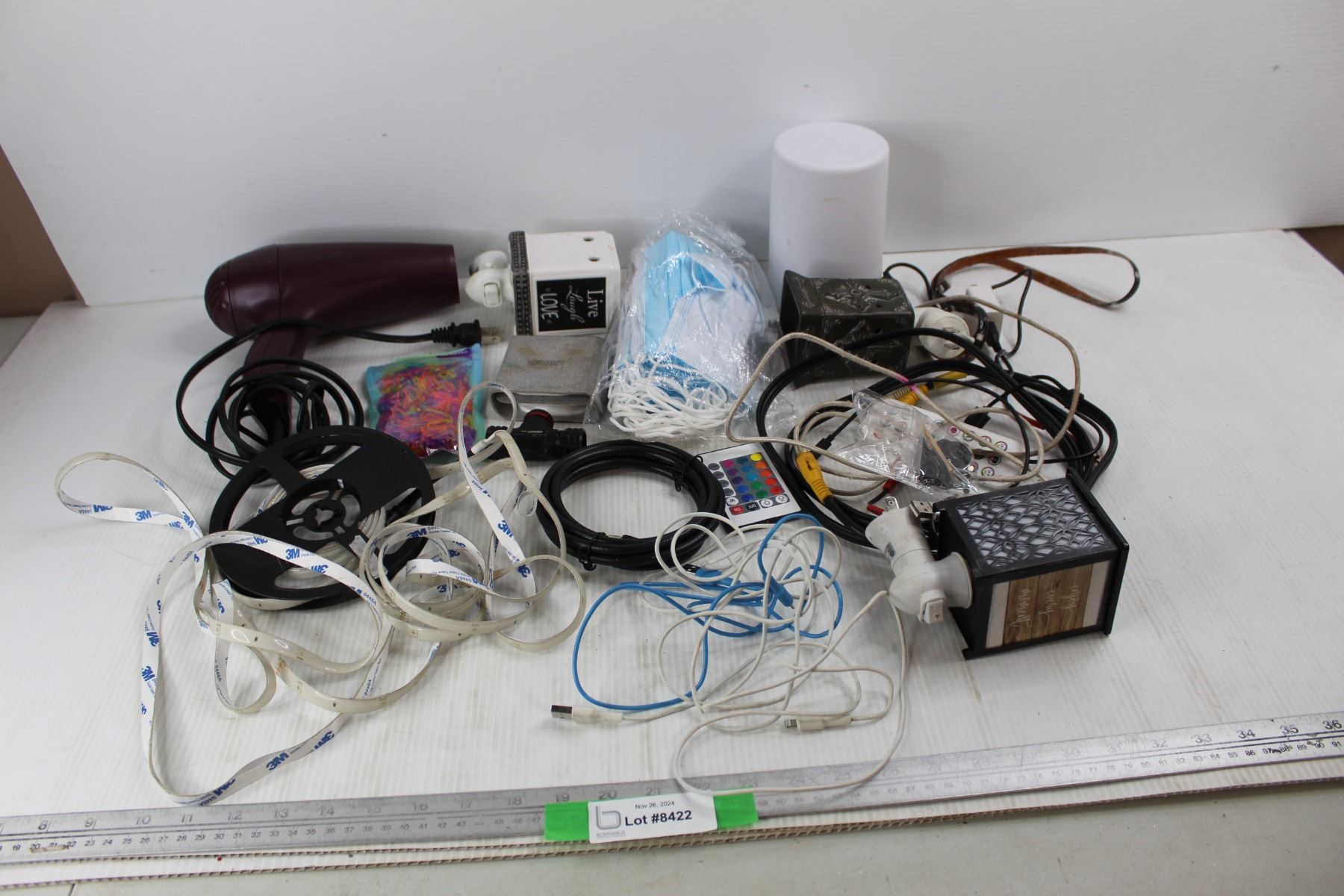Lot Of Various Items, Blow Dryer- Powers On, Disposable Masks, Misc.