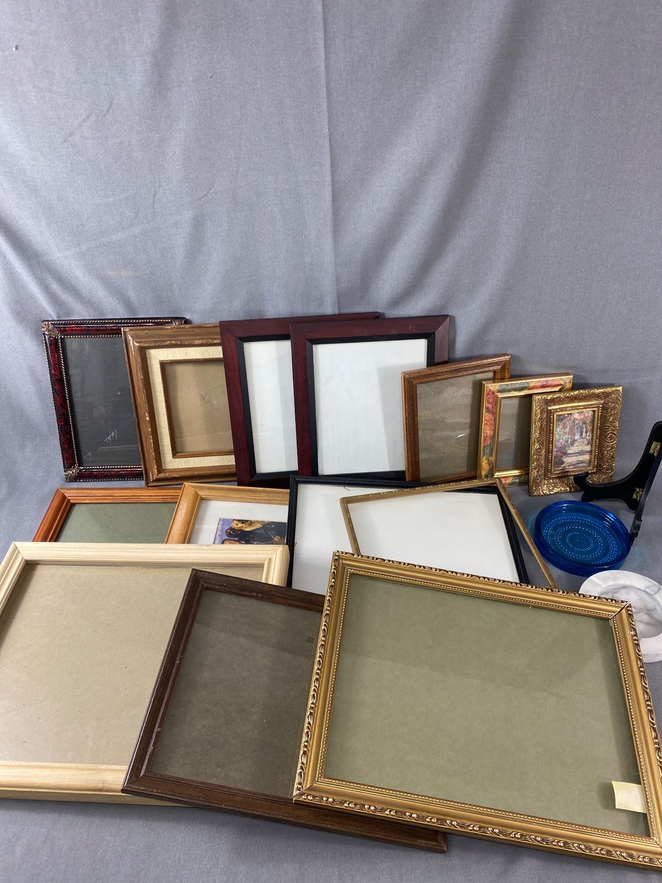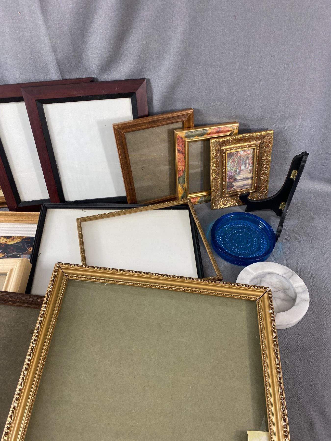 Lot Of Various Sized Mostly Wood Frames & 2 Glass AshTrays.