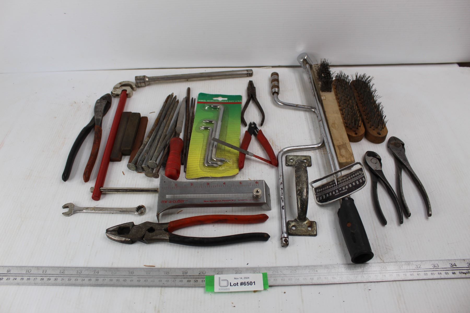 Lot Of Various Tools/ Hardware Items, Pliers, Wire Brushes, Misc.