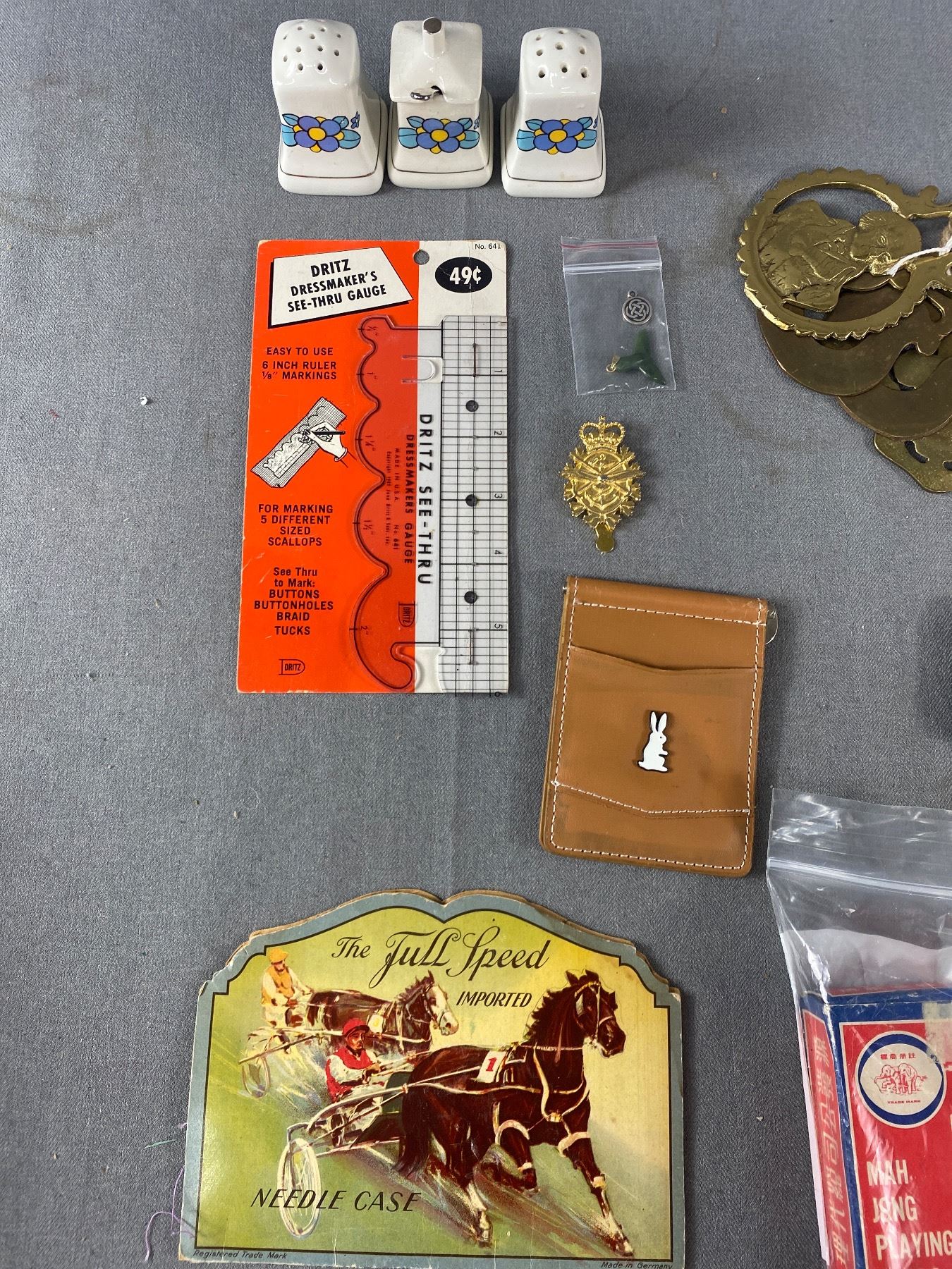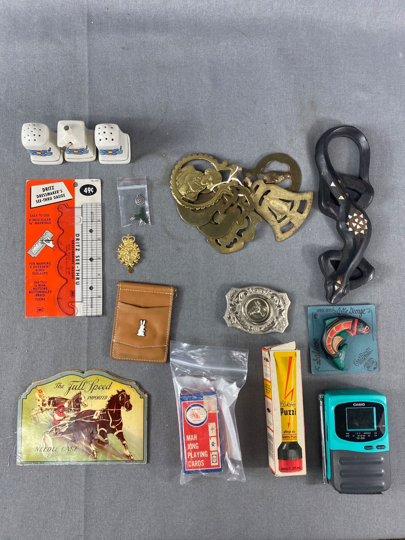 Lot Of Vintage Finds - Ceramic Condiment Set, Casio Model TV-100, Mah Jong Playing Cards & More