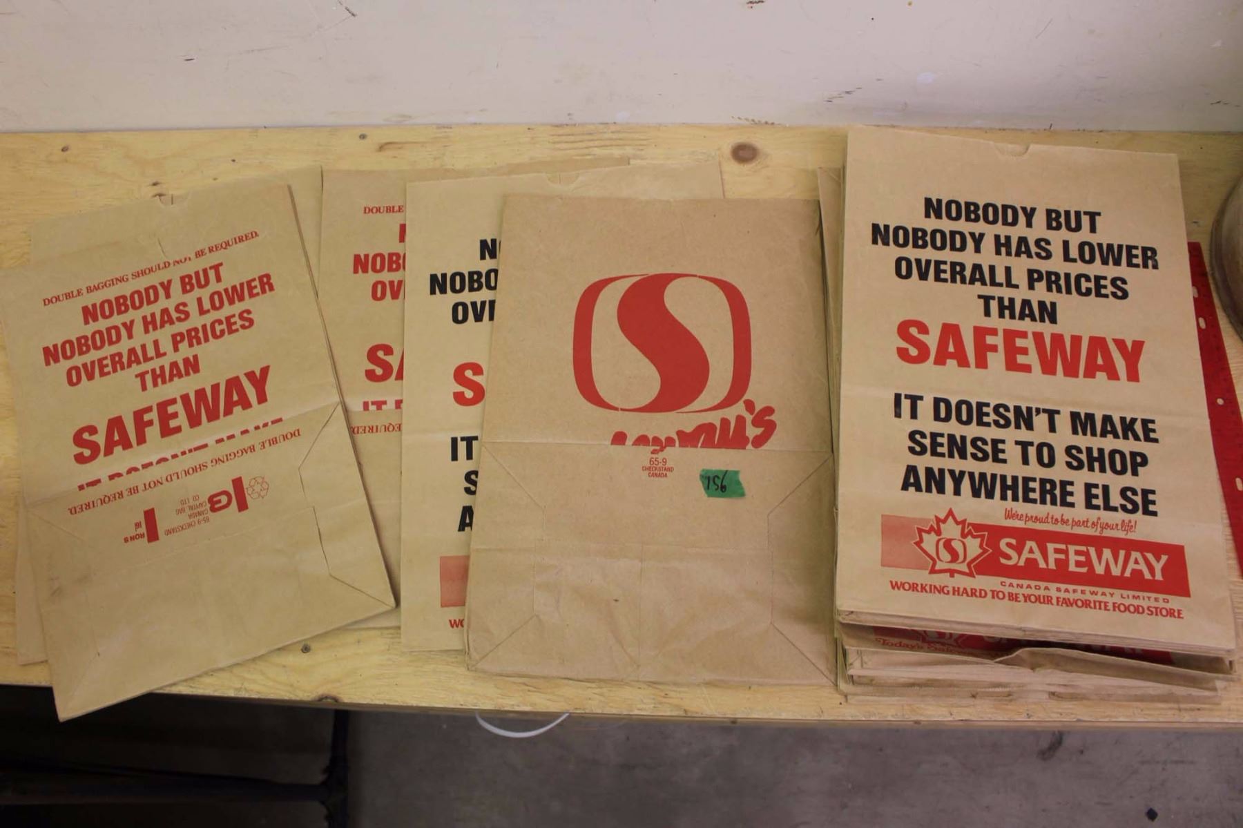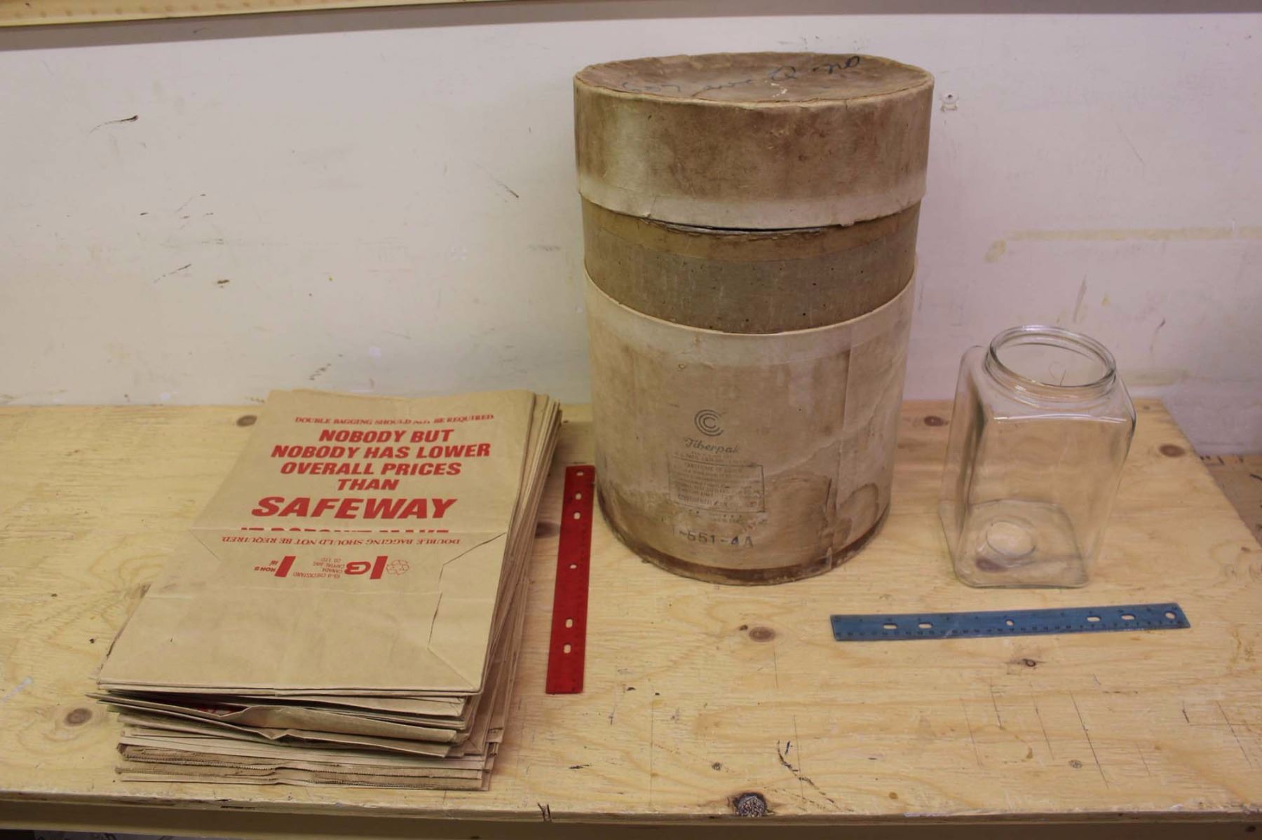 Lot Of Vintage Related (Cardboard Cheese Box, Glass Candy Jar, Safeway Paper Bags)