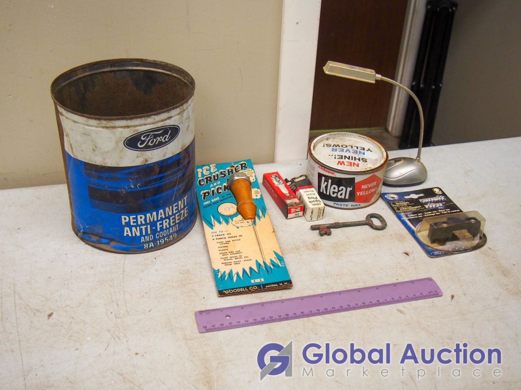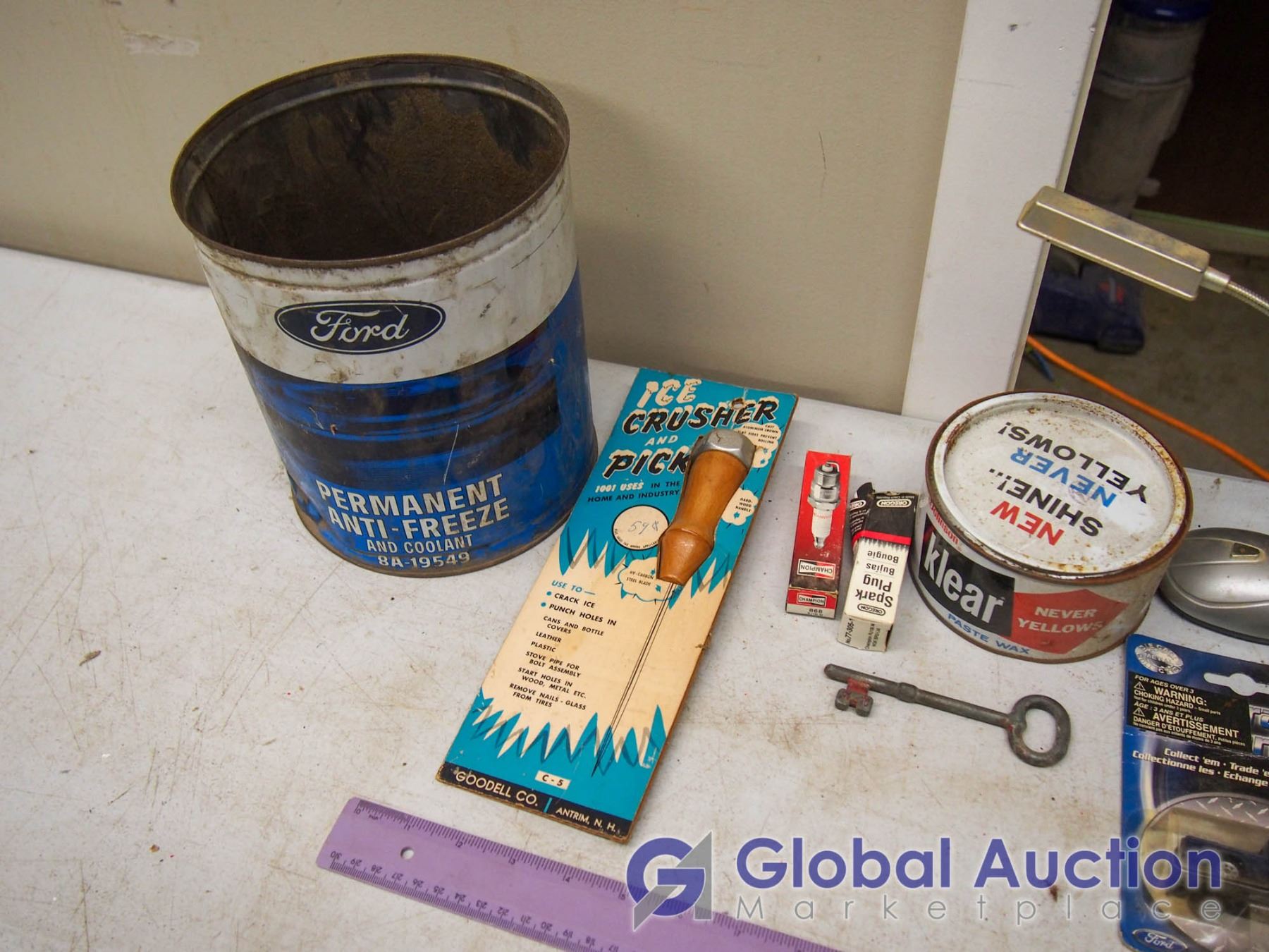 Lot Of misc. Ford Tin, Skeleton Key, Ice Krusher Etc