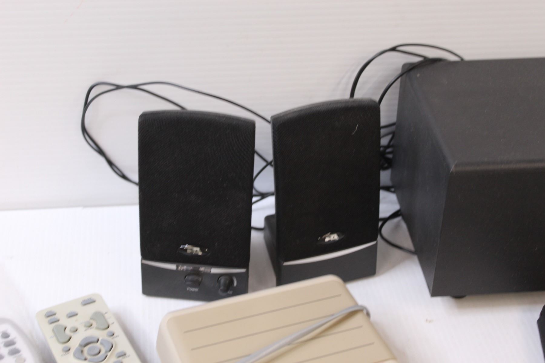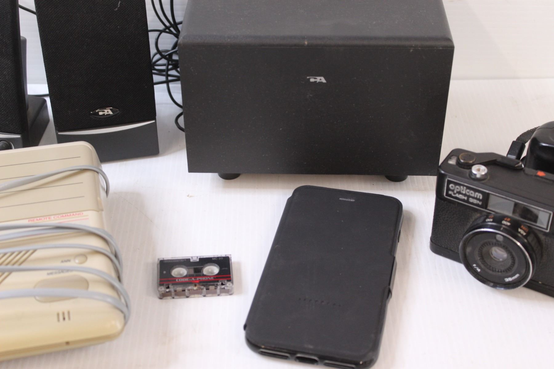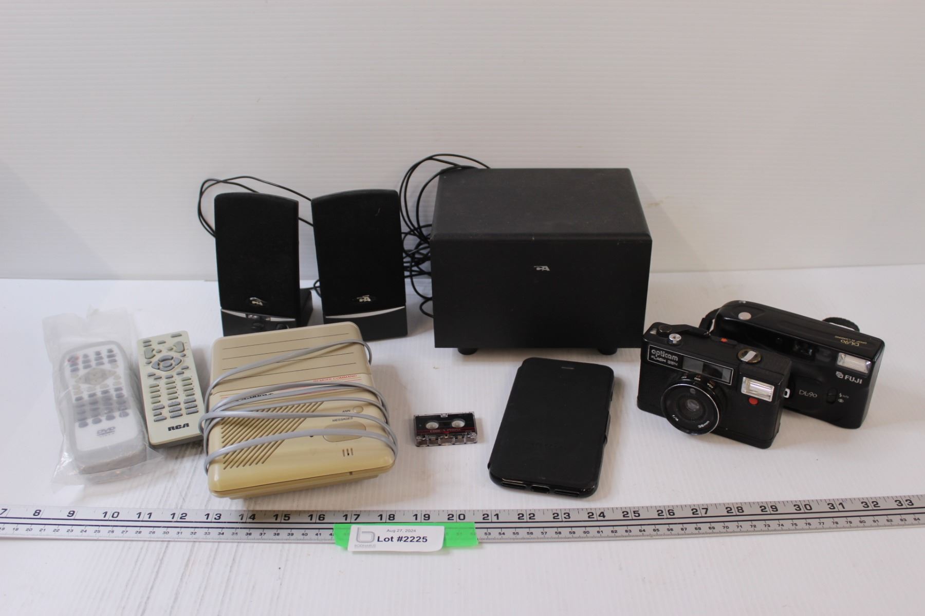 Lot: Opticam Camera, Fuji Camera, Smart Phone Case, Computer Speakers, Remotes, Answering Machine,