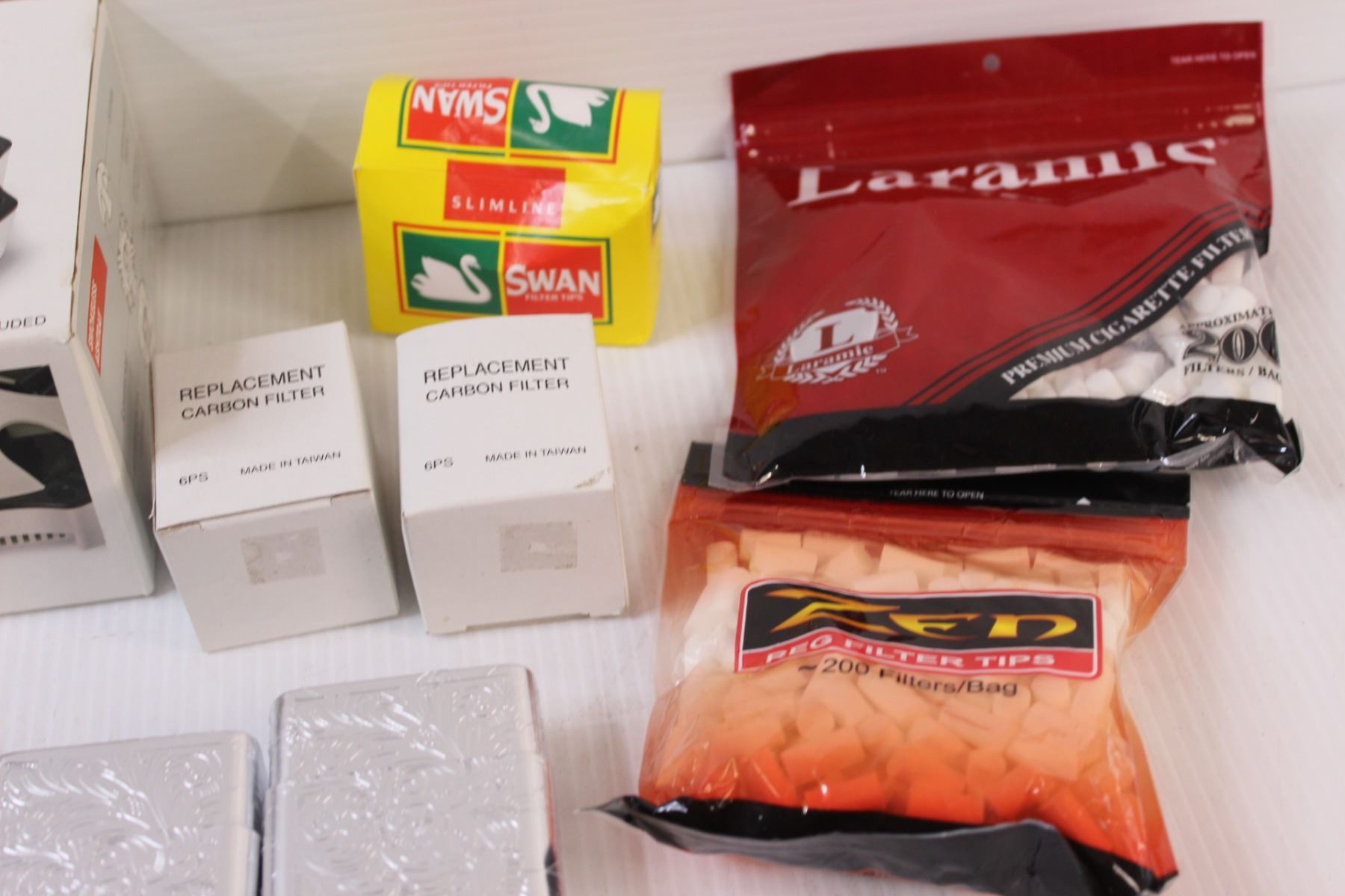 Lot: Smokeless Ashtray, (4) Cigarette Holders, Assorted Filter Packages