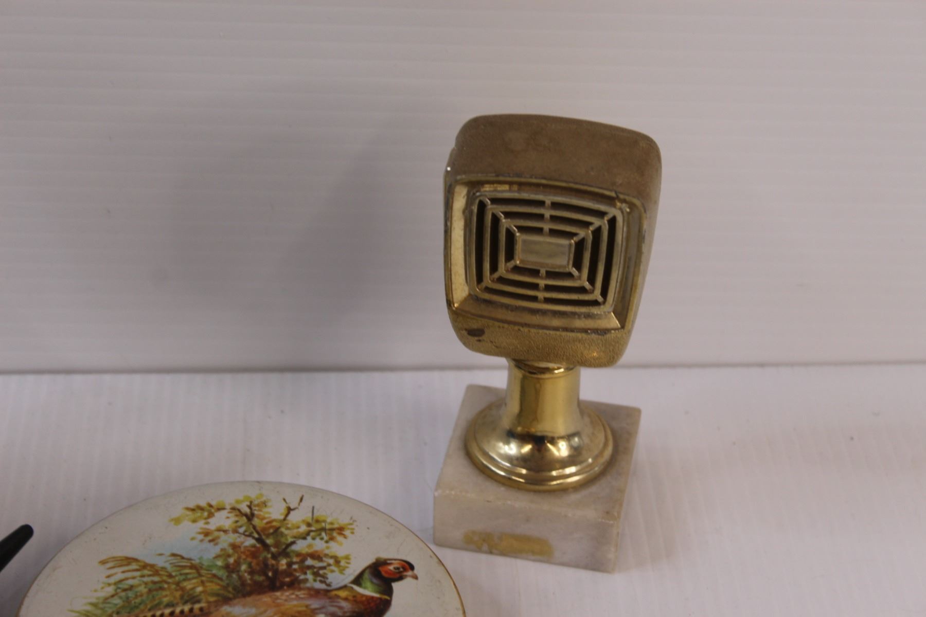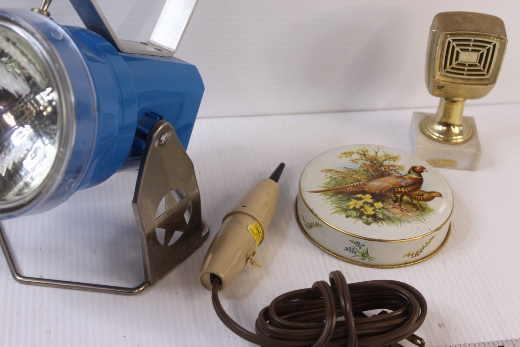 Lot: Spotlight, Demagnetizer, Tin Lid, Microphone Award, Misc.