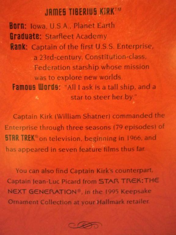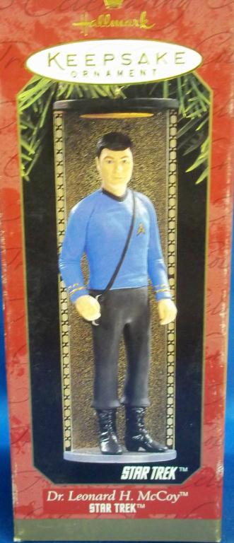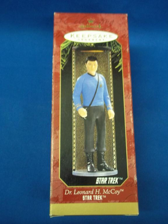 New In Box with original Price tags still attached from Hallmark. Captain James T. Kirk seated in his command seat aboard the USS Enterprise. Mr. Spock Seated at his USS Enterprise Station. Dr. Leonard H. McCoy in the transporter chamber. One of the most popular shows in History excellent collector value