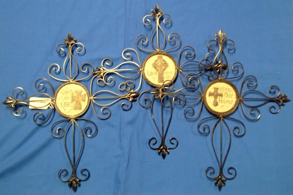 Love Never Fails, "Bless Our Home" and "Glorify The Lord" are the sayings placed on a plaque insert on these gorgeous crosses.