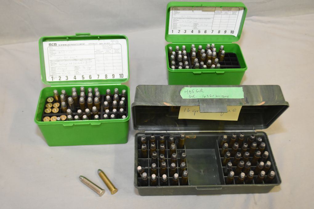 Lot : Three Green Plastic Cases : Over 130 .45 - 70 Cal Reloads