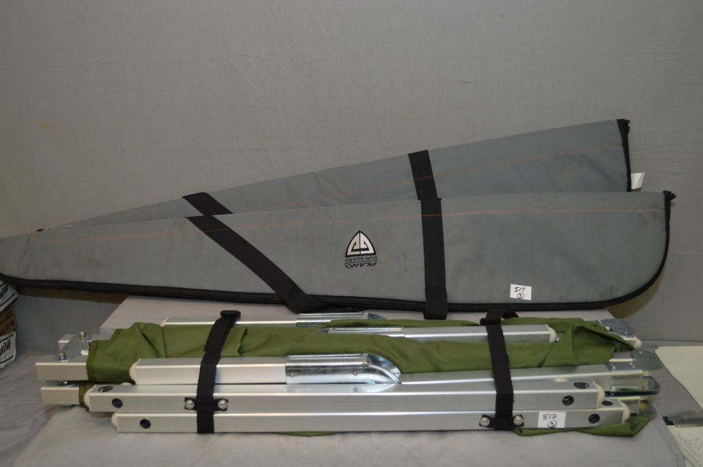 Lot : Three Items : Fold Out Cot & 2 grey rifle cases
