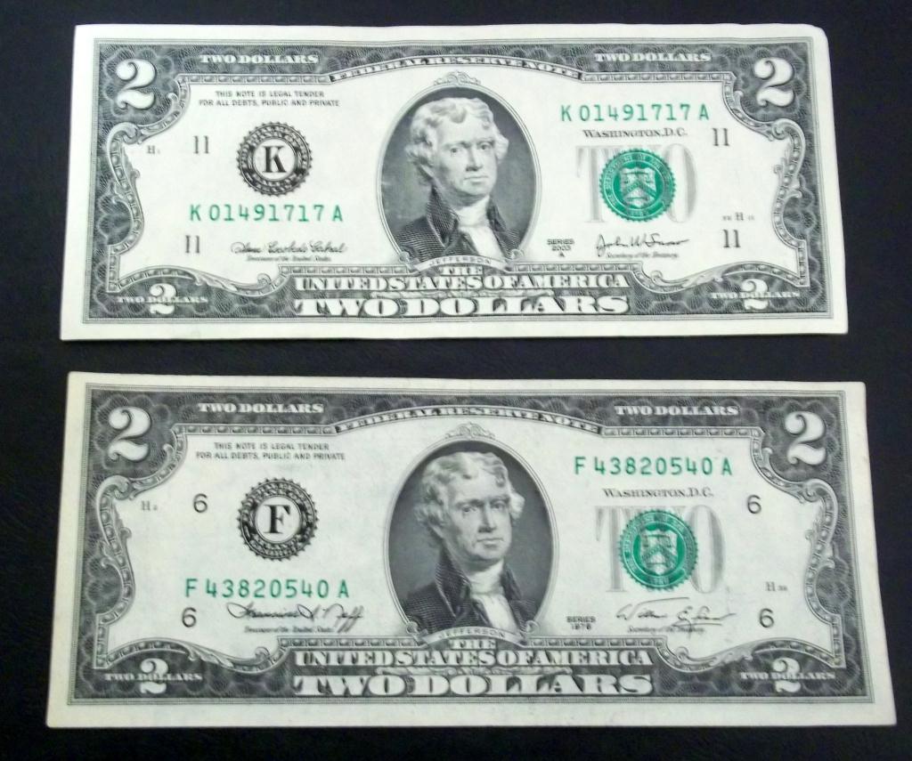 Lot-Two $2 Bills Pristine Condition 1976 & 2003
