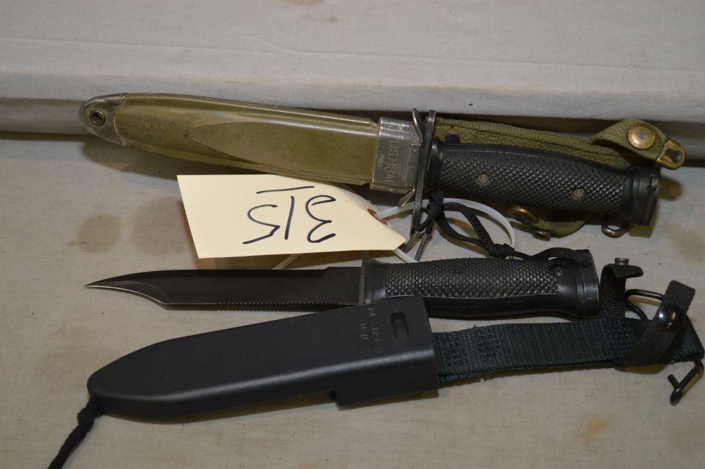 Lot : Two Bayonets w/scabbards [ one marked USN MK III Model O scabbard marked the same - one has unmarked bayonet but scabbard is marked USM8 A1 over PWH ]