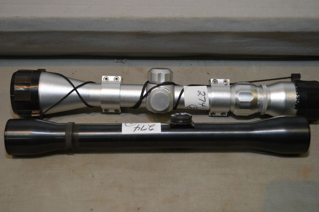 Lot : Two Scopes [ One is Mossberg 3 x 9 Variable scope w/rings & caps Satin finish - One is Weaver K4 60 - B scope ]