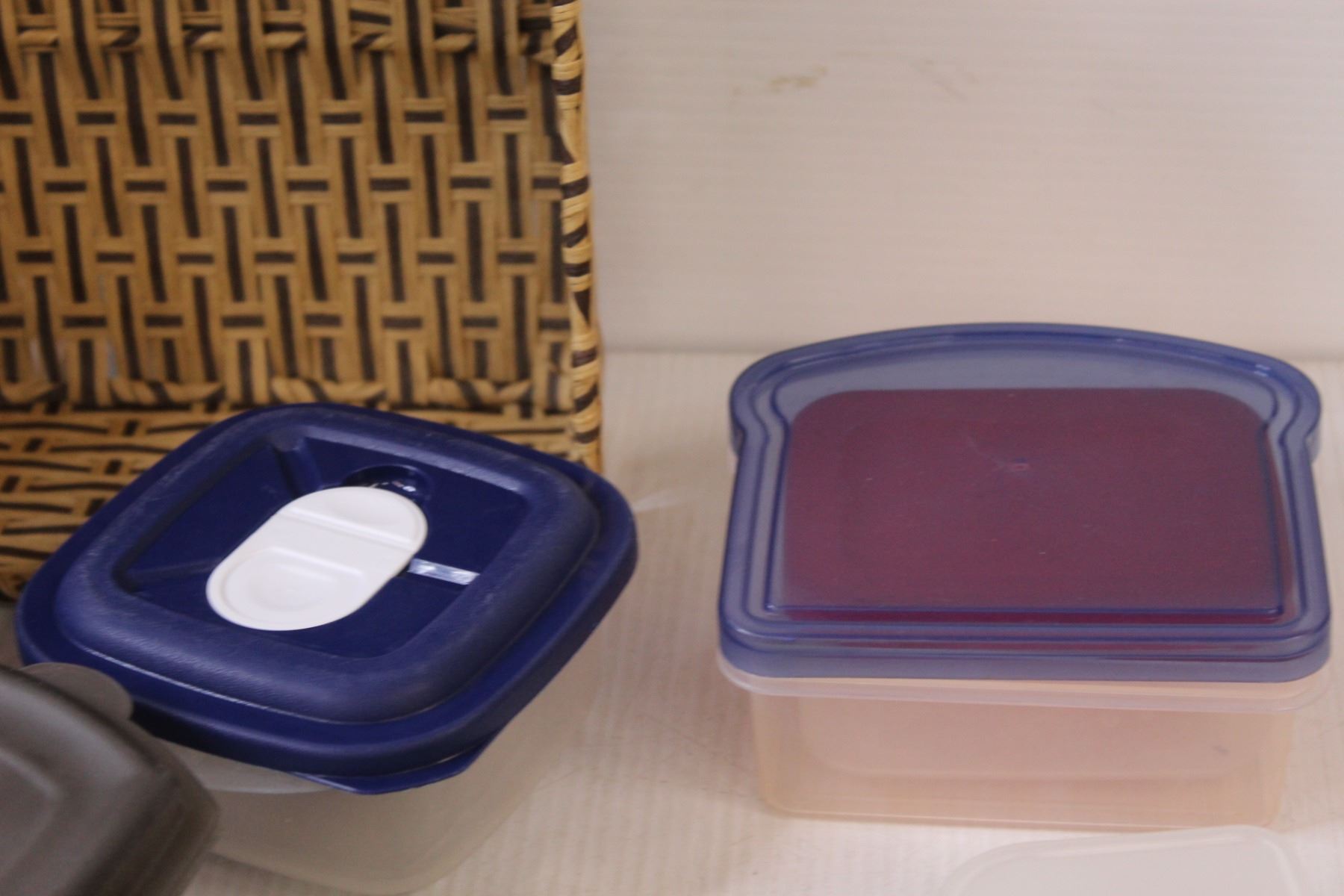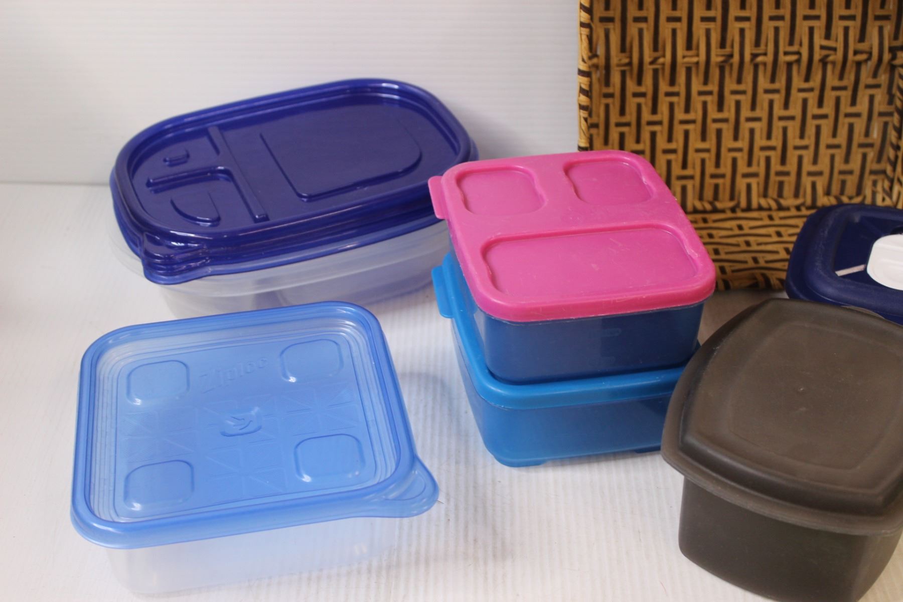 Lot: Ziploc Containers - Various Sizes in Wicker Basket