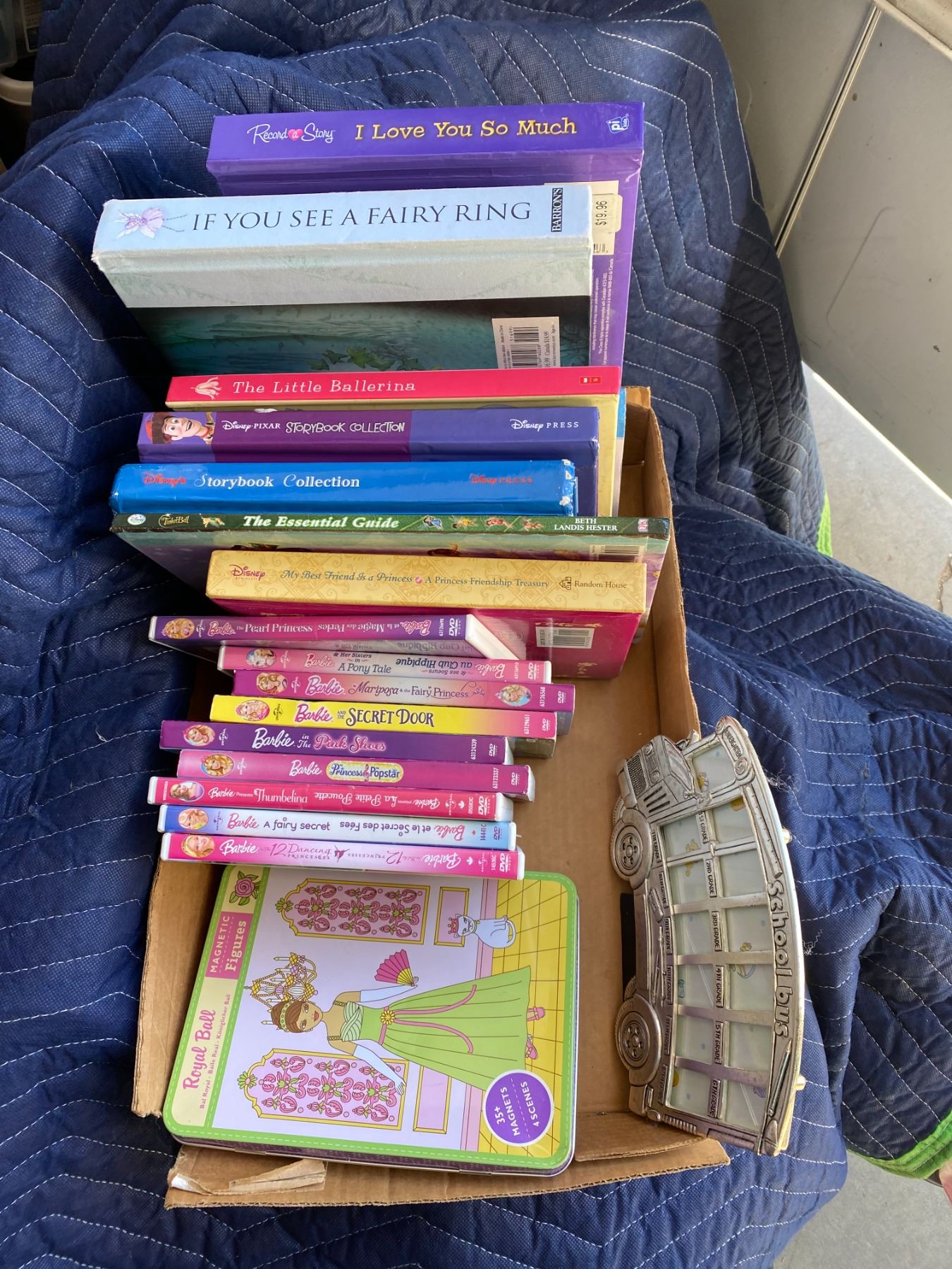 Lot books, Barbie dvds and magnetic figures