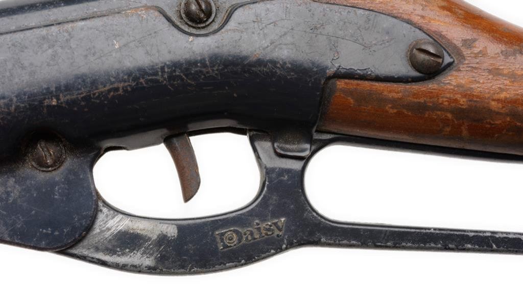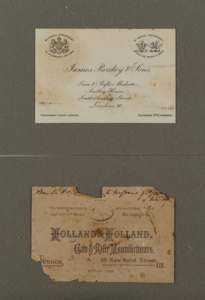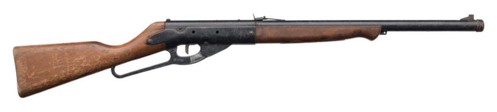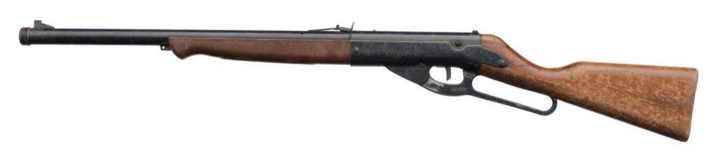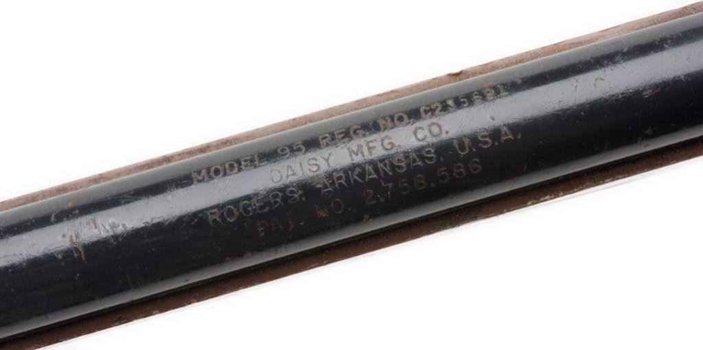 Lot including an early Daisy Model 95 lever action BB rifle in working order at time of description and 2 original framed early shotgun maker labels; one a James Purdey & Sons; the other a Holland & Holland label. The Purdey label is overall very good with some light foxing; the Holland & Holland label also has some foxing and several edge losses. Est.: $50-$75.