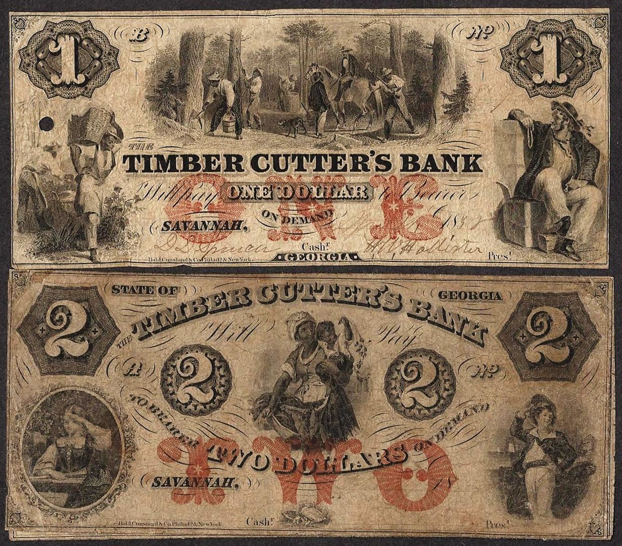 One Lot of $1 & $2 Timber Cutter's Bank Georgia Obsolete Notes.