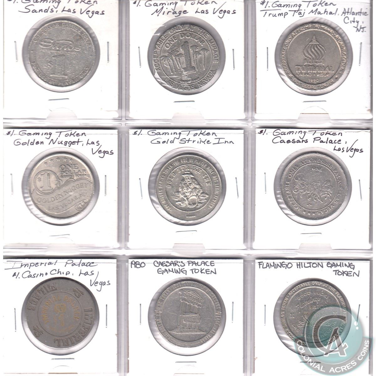 Lot of $1 Casino Gaming Tokens, all Except 2 from Las Vegas. 9pcs