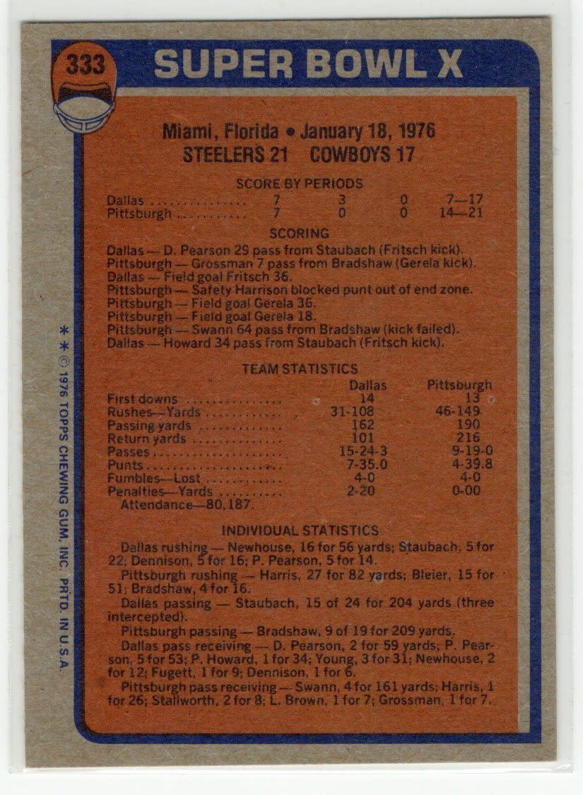 Lot of 1 Rocky Bleier Card & 1 Steeler Superbowl Card: 1980 Topps Card number 61 & Super Bowl X 1977 Topps Card number 333