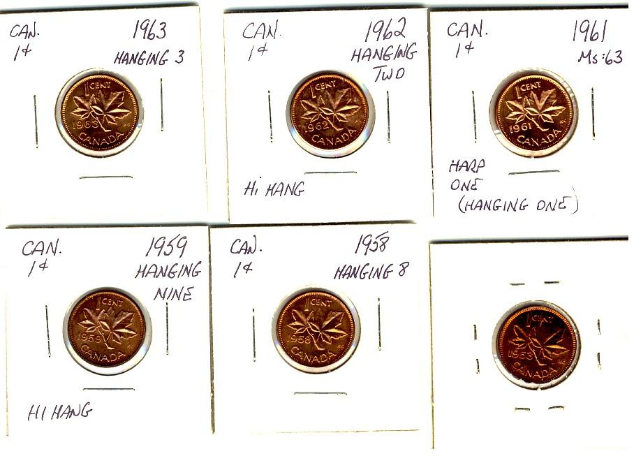 Lot of 1¢ varieties with hanging last numbers, includes 1953, 1958, 1959, 1961, 1962 & 1963. Lot of