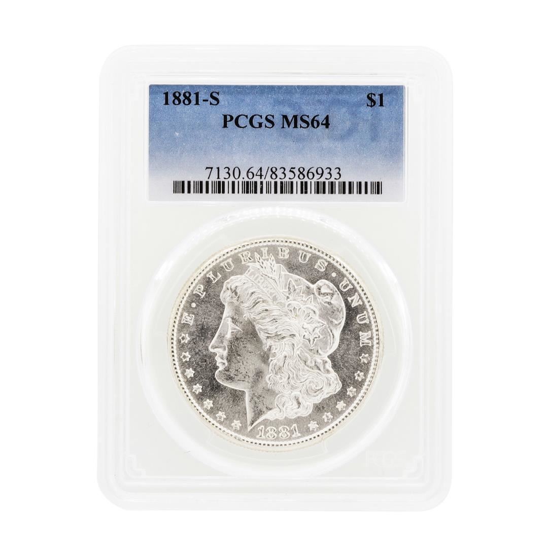 One Lot of (10) 1881-S $1 Morgan Silver Dollar Coin PCGS MS64. PCGS Certified.