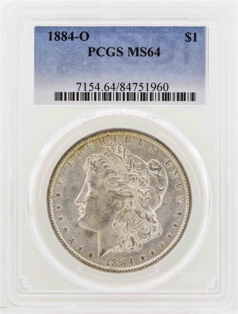 One Lot of (10) 1884-O $1 Morgan Silver Dollar Coin PCGS MS64. PCGS Certified.