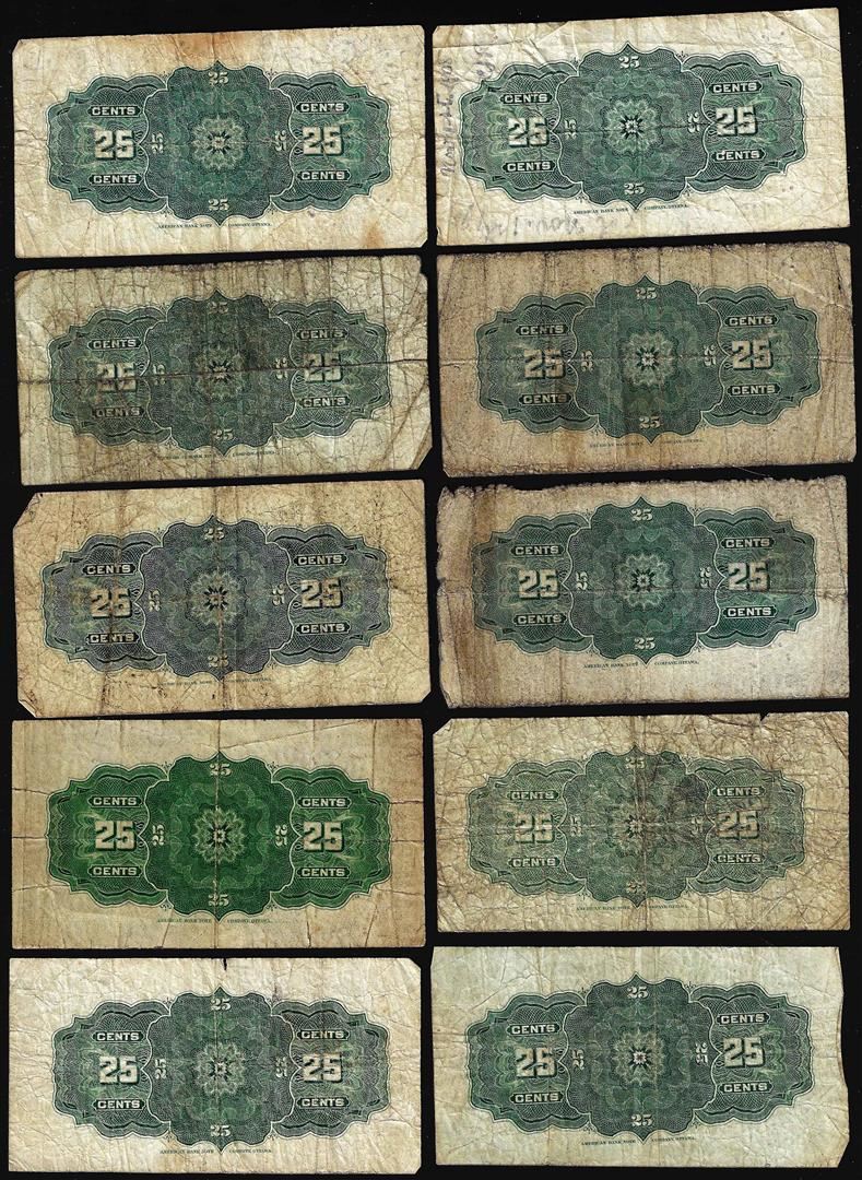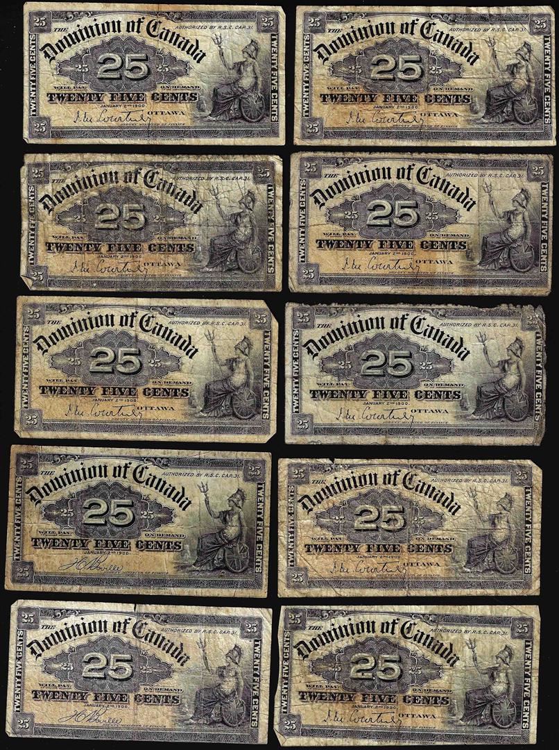 One Lot of (10) 1900 Dominion of Canada Twenty-Five Cent Notes.