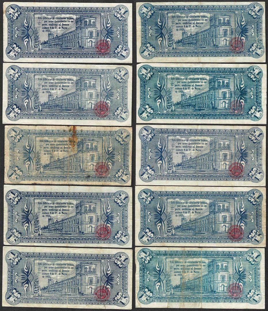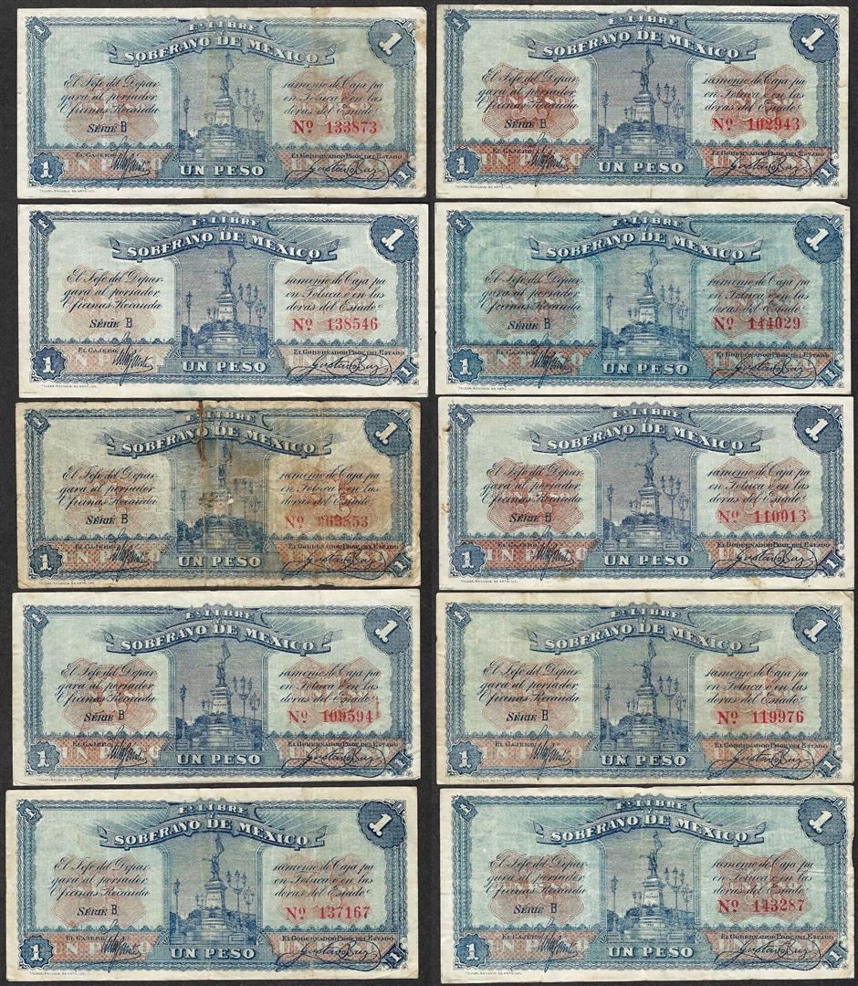 One Lot of (10) 1915 $1 Mexico Revolutionary Toluca Un Peso Notes.