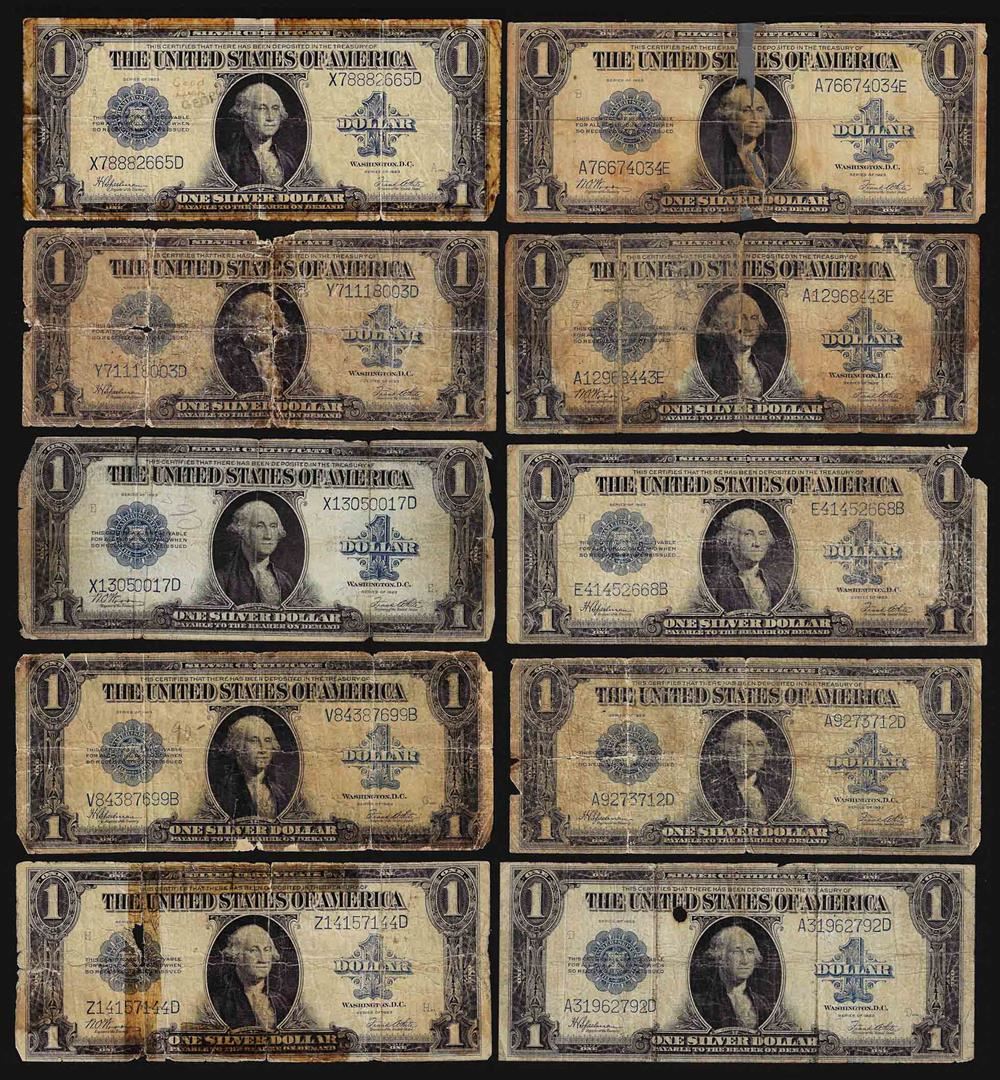 One Lot of (10) 1923 $1 Silver Certificate Notes.