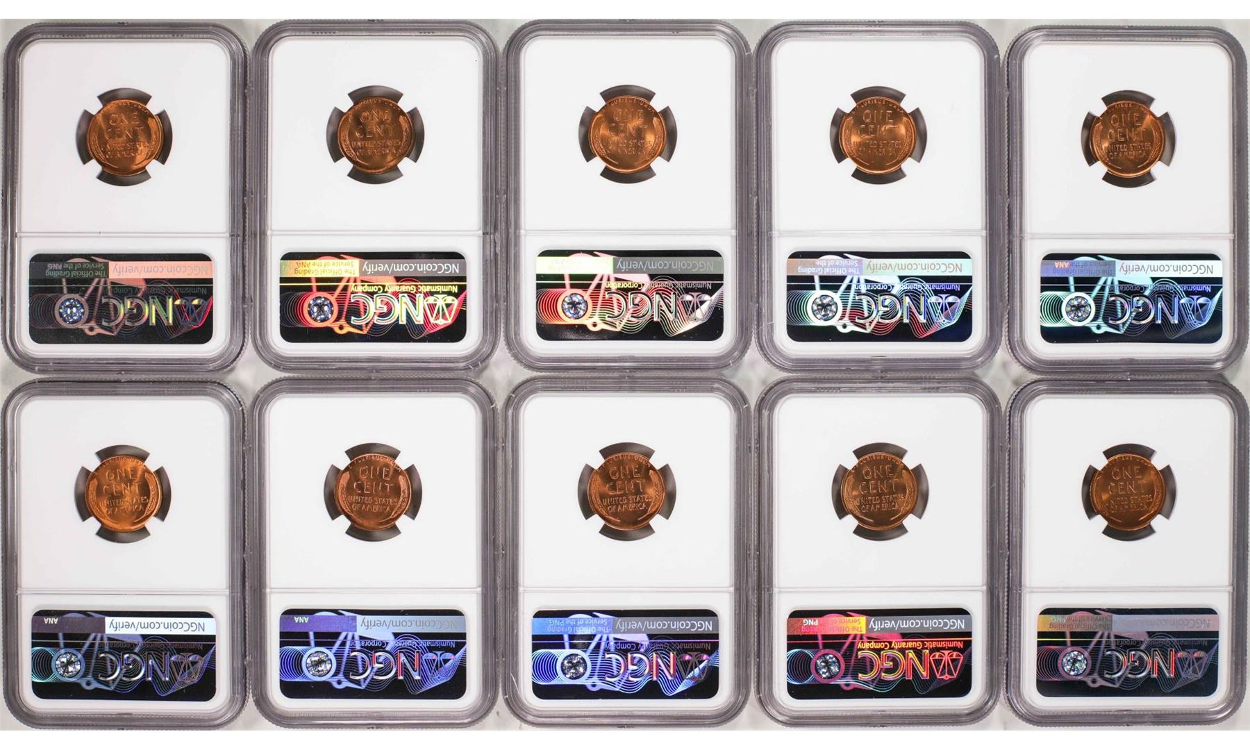 One Lot of (10) 1942-D Lincoln Wheat Cent Coins NGC MS67RD. NGC Certified.