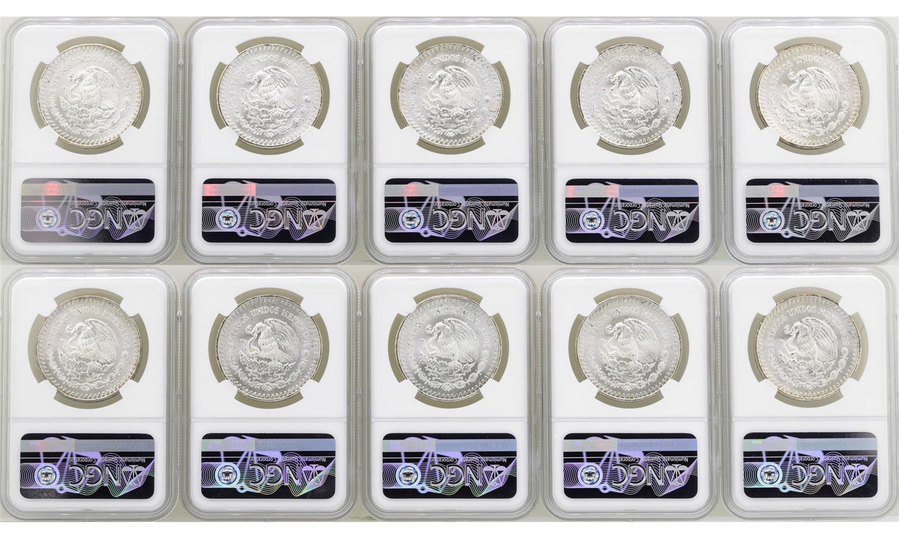 One Lot of (10) 1982Mo Mexico Libertad Onza Silver Coins NGC MS66.