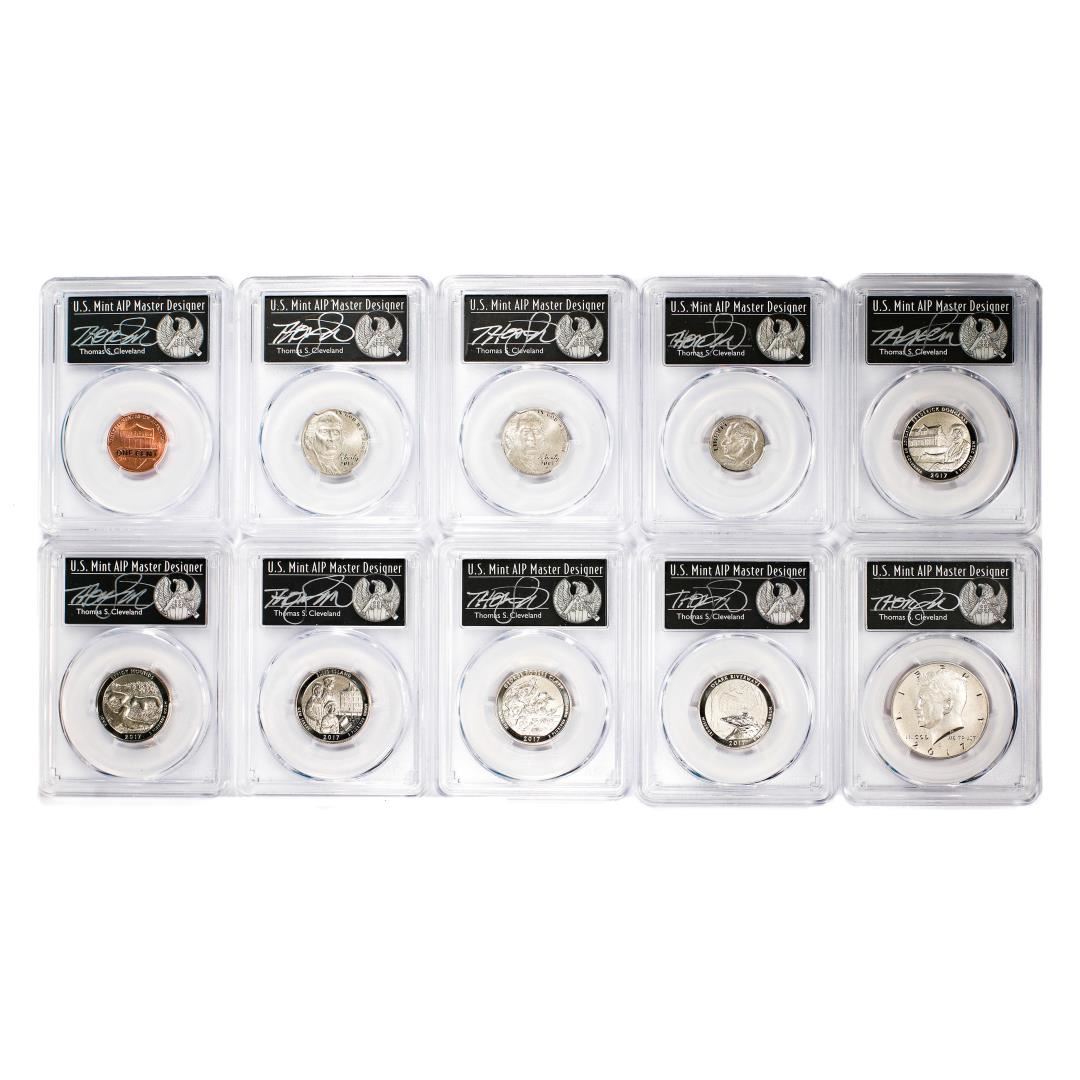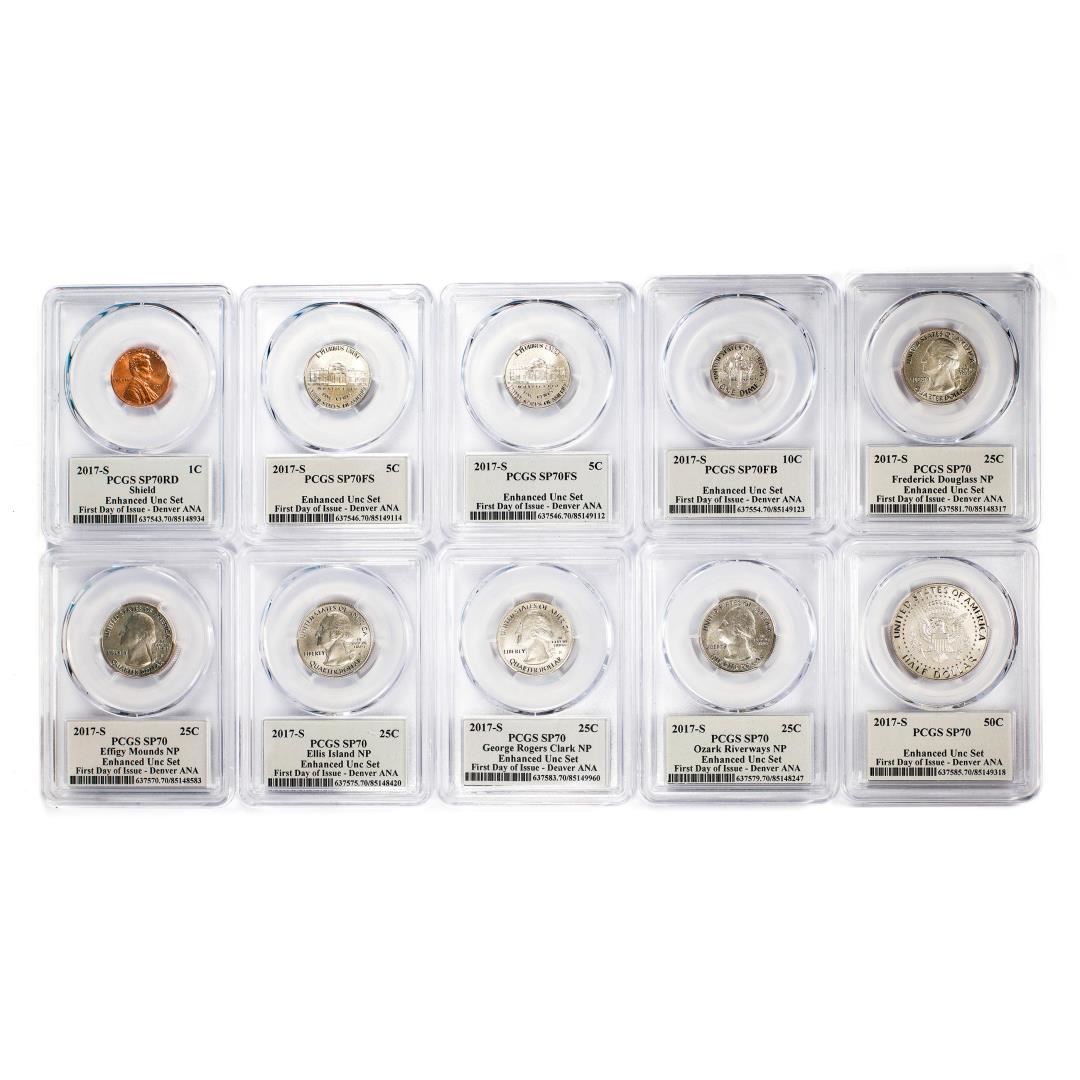 One Lot of (10) 2017-S Enhanced Uncirculated Denver Mint Coin Set PCGS SP70 Cleveland Sig. PCGS Graded.