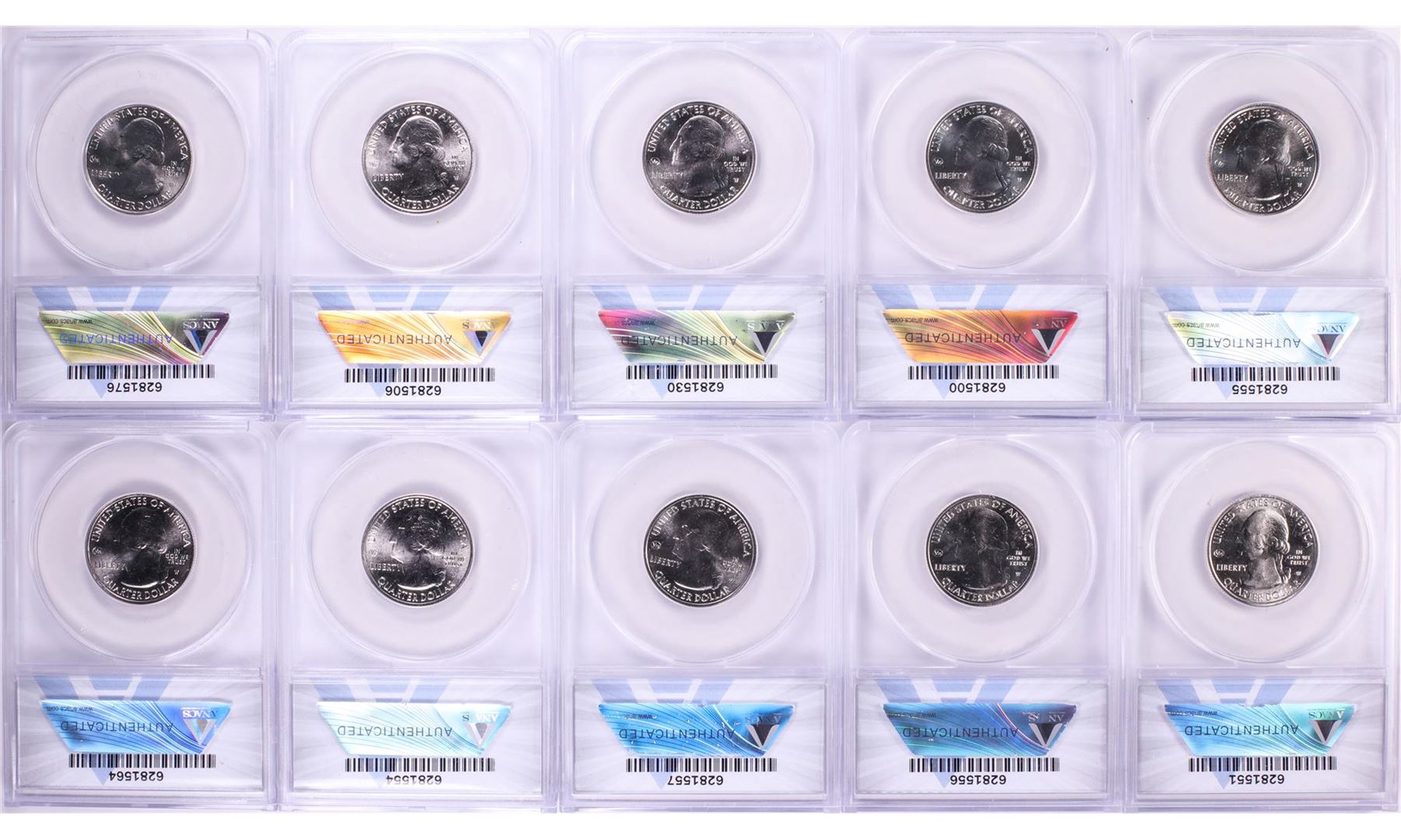 One Lot of (10) 2020-W American Samoan Fruit Bat V75 WWII Quarters ANACS MS65. ANACS Certified.