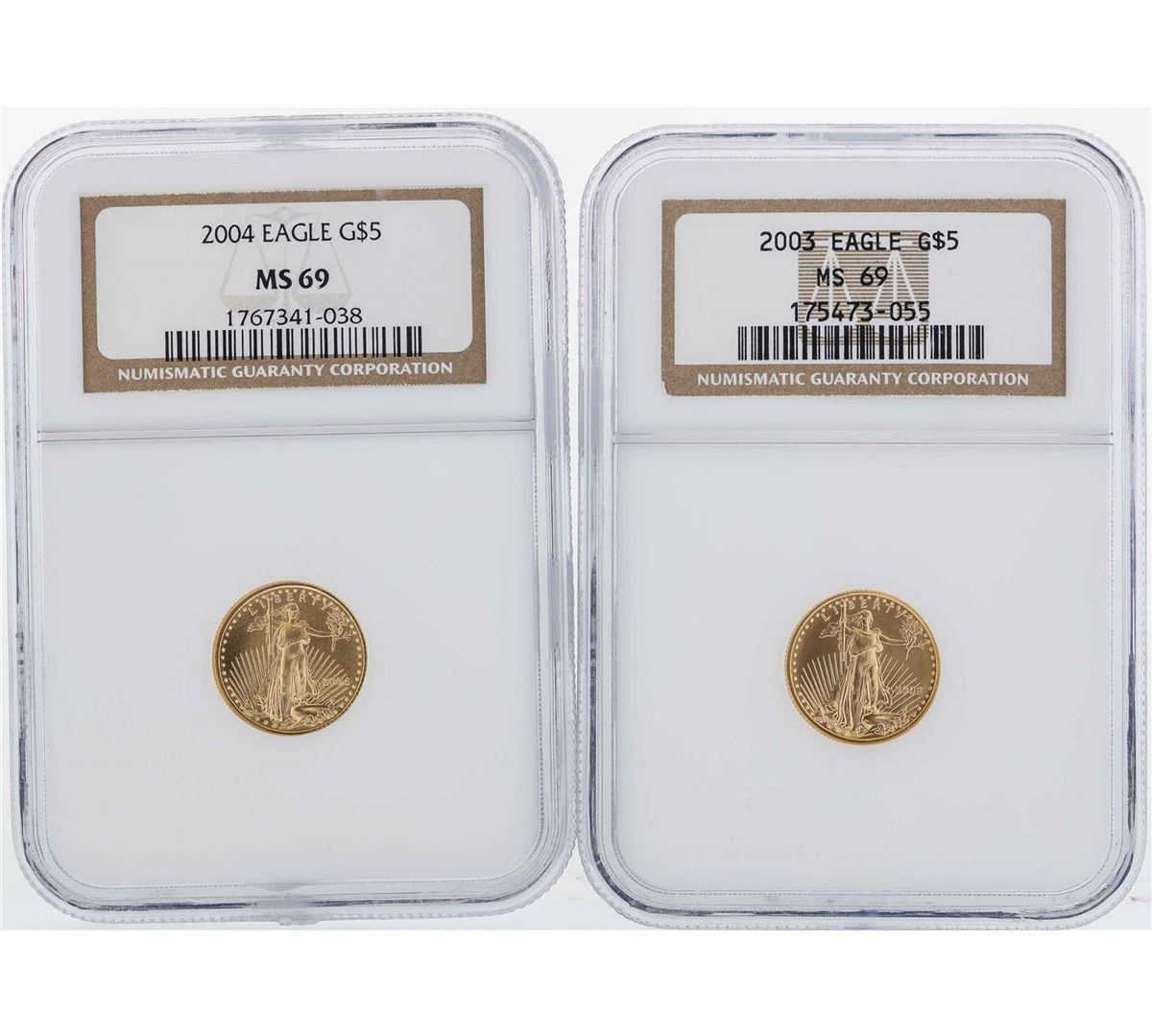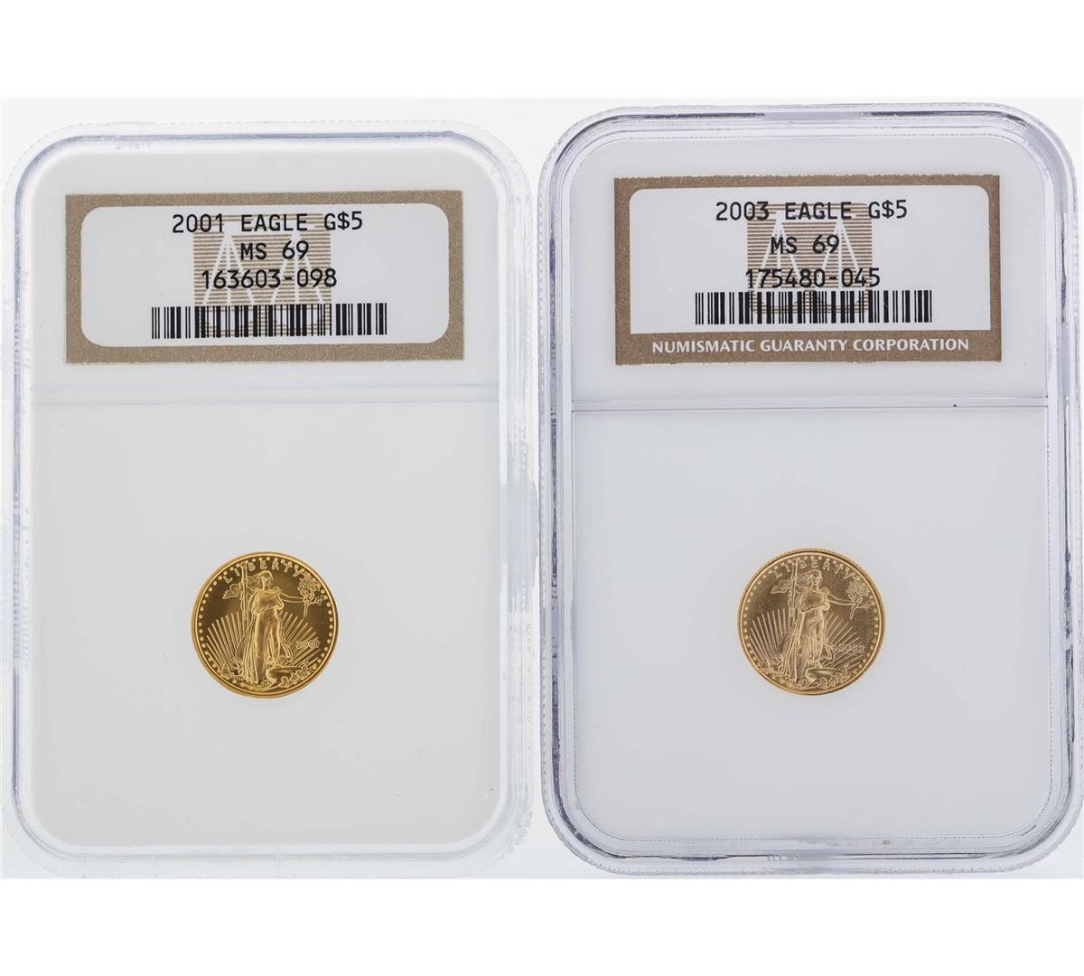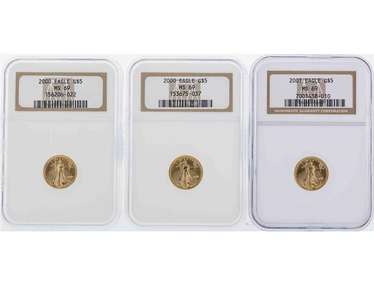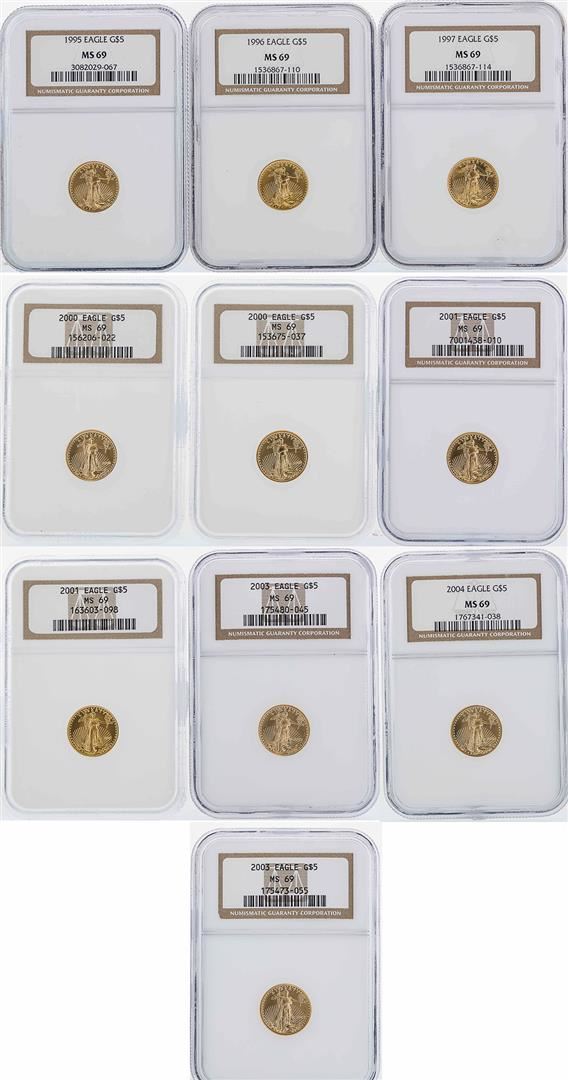 One Lot of (10) $5 American Gold Eagle Coins NGC MS69. NGC Certified.