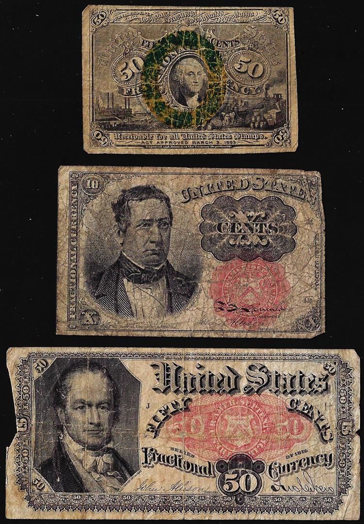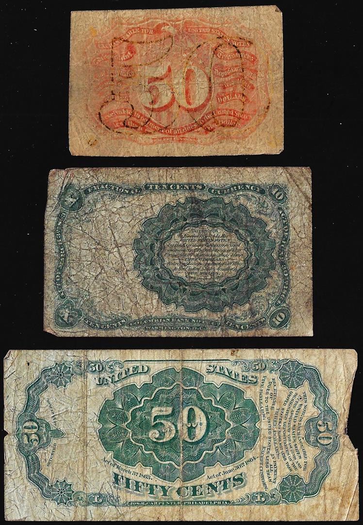 One Lot of 10/50/50 Cent Fractional Currency Notes.