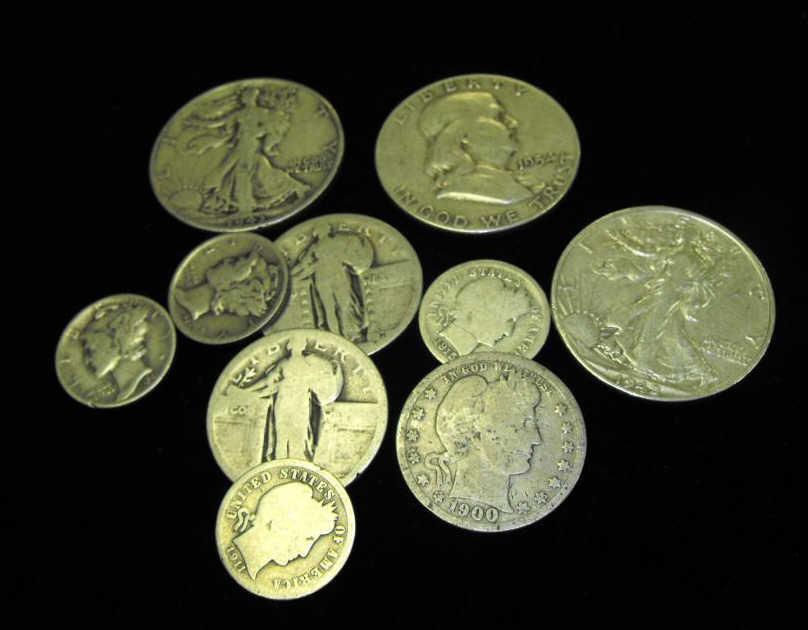 (3) 90% Halves- 2 WL-1 Franklin- (3) 90% Quarters- 2 SL- 1 Barber- (4) 90% DImes- 2 Barber-2 Mercury- Coin dates will vary- You will receive the total coins you see in the picture. They may be different dates and grades.