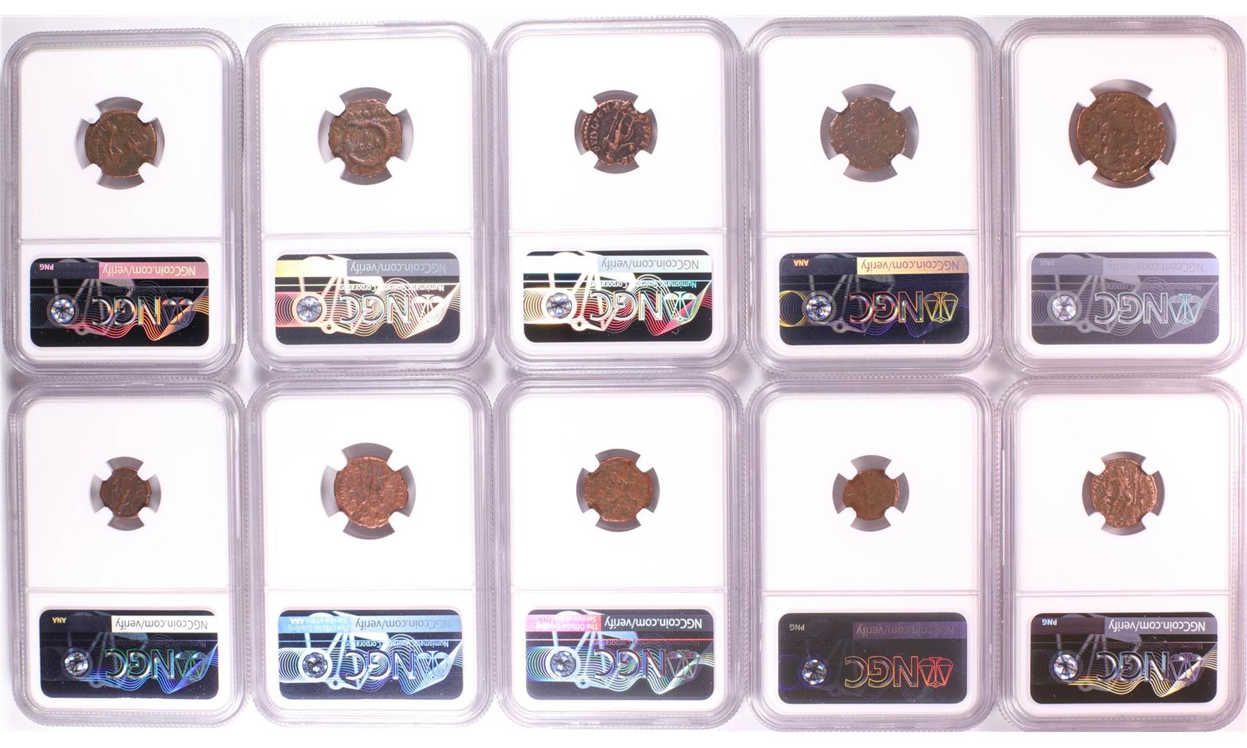One Lot of (10) Ancient Roman Empire Coins NGC Certified. NGC Certified.