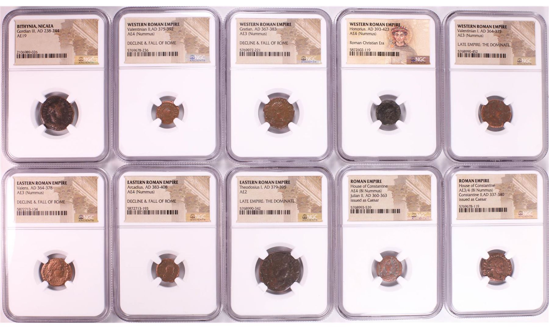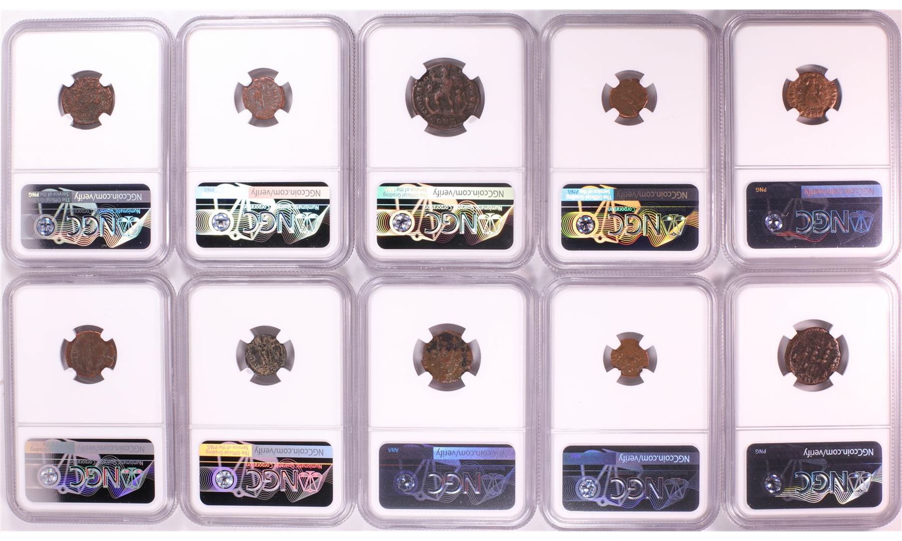 One Lot of (10) Ancient Roman Empire Coins NGC Certified. NGC Certified.