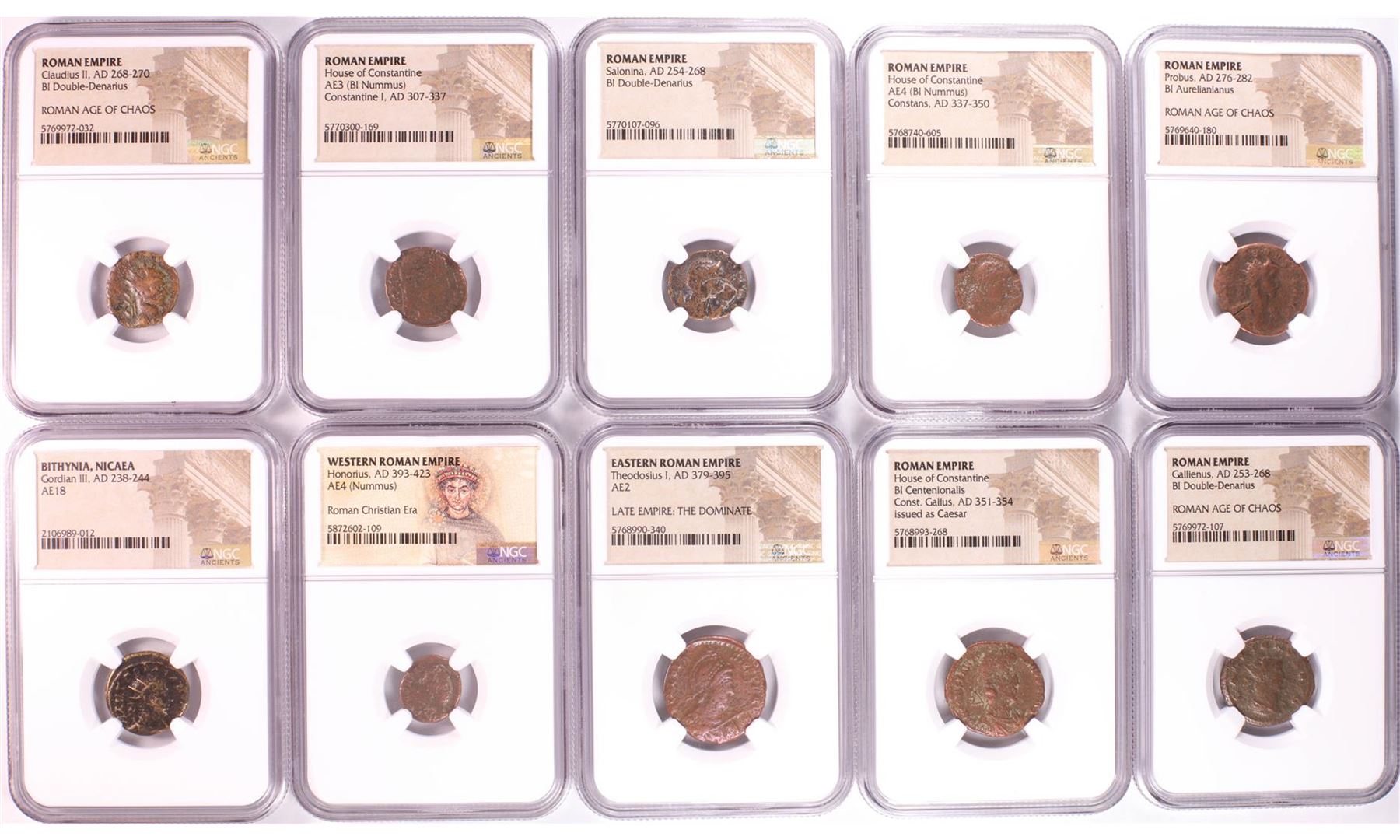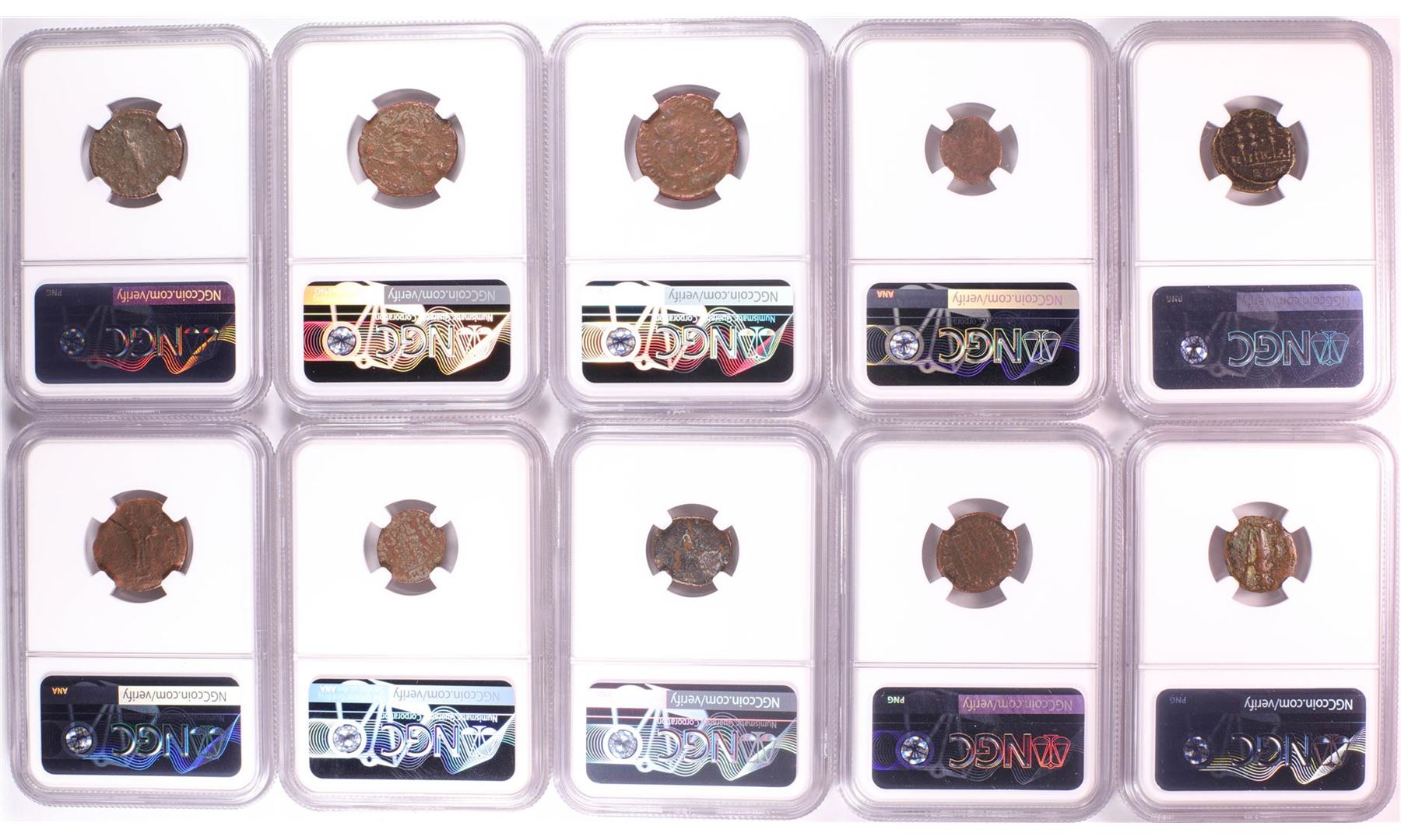 One Lot of (10) Ancient Roman Empire Coins NGC Certified. NGC Certified.