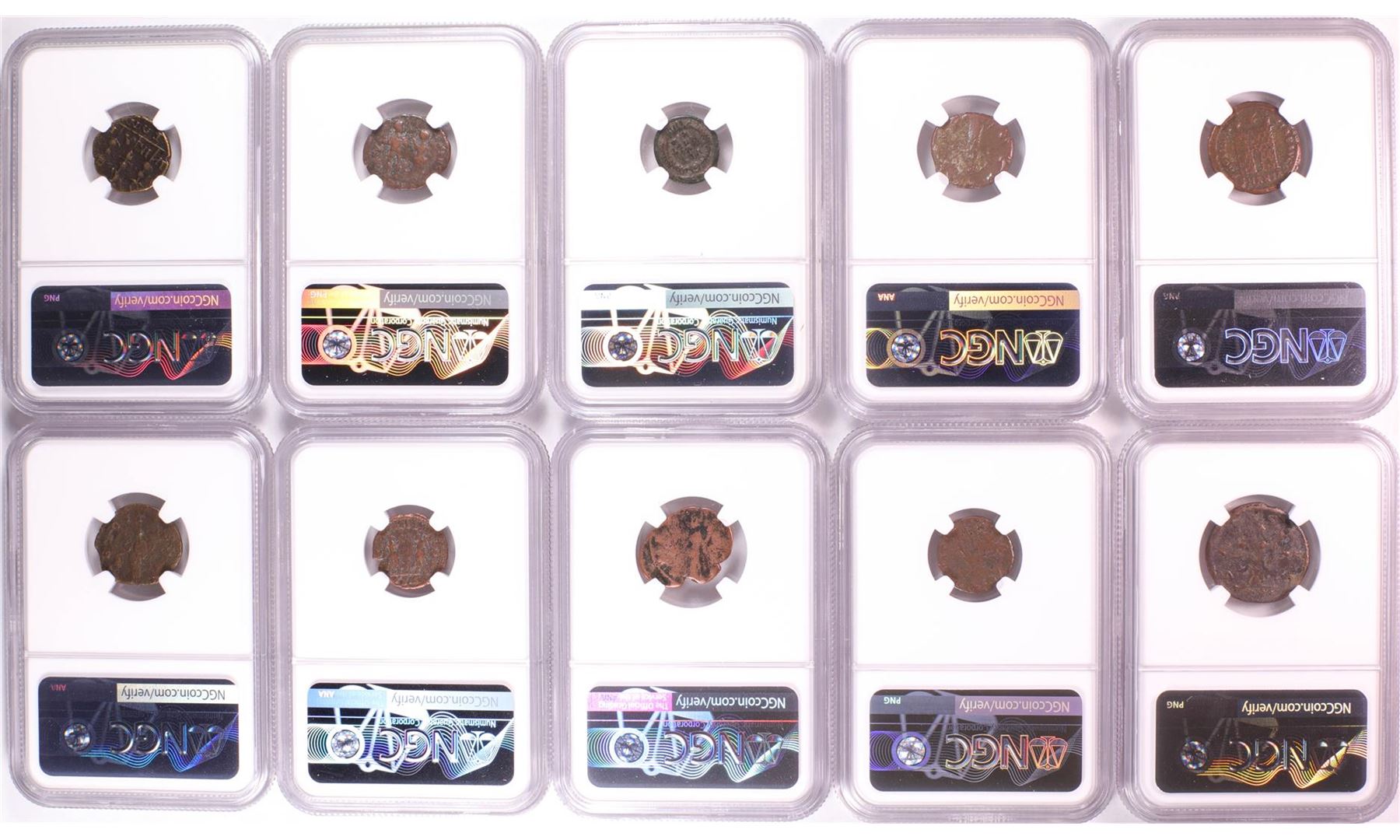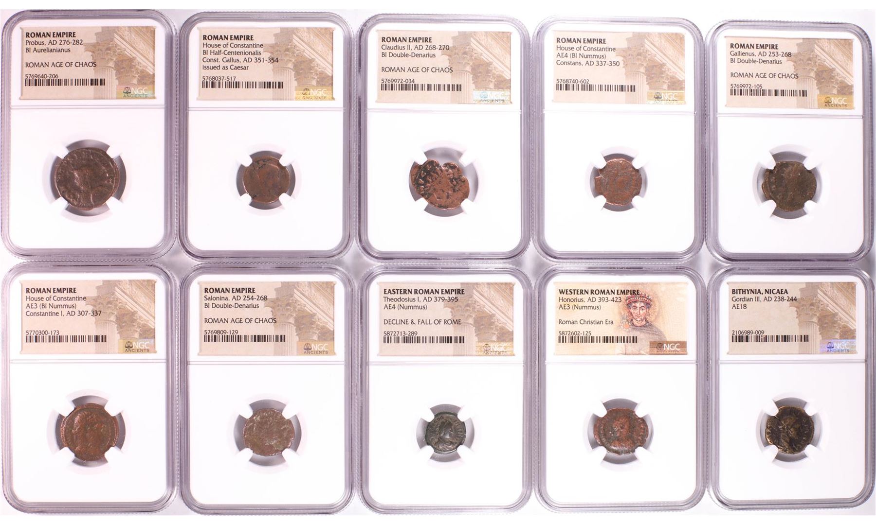 One Lot of (10) Ancient Roman Empire Coins NGC Certified. NGC Certified.