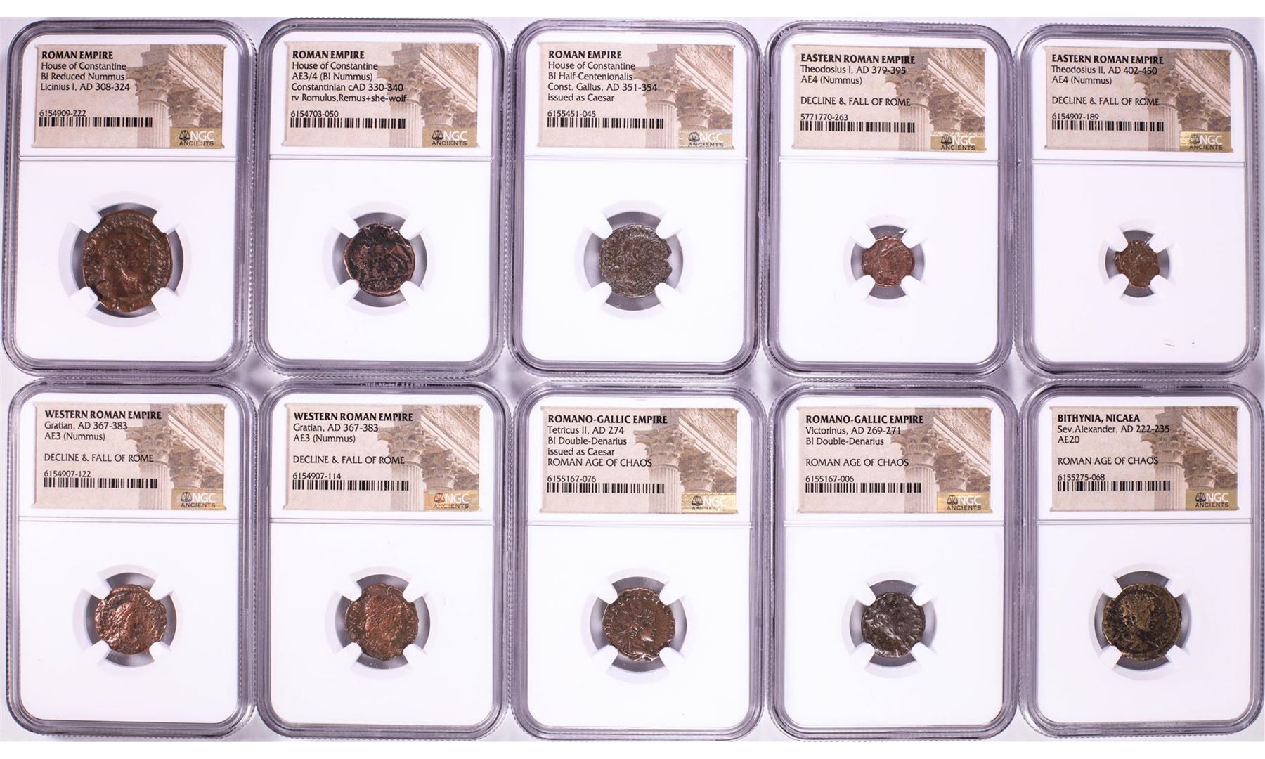 One Lot of (10) Ancient Roman Empire Coins NGC Certified. NGC Certified.