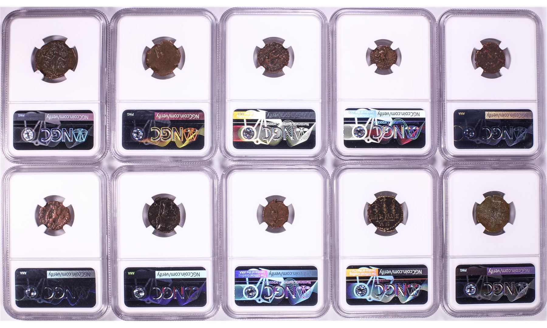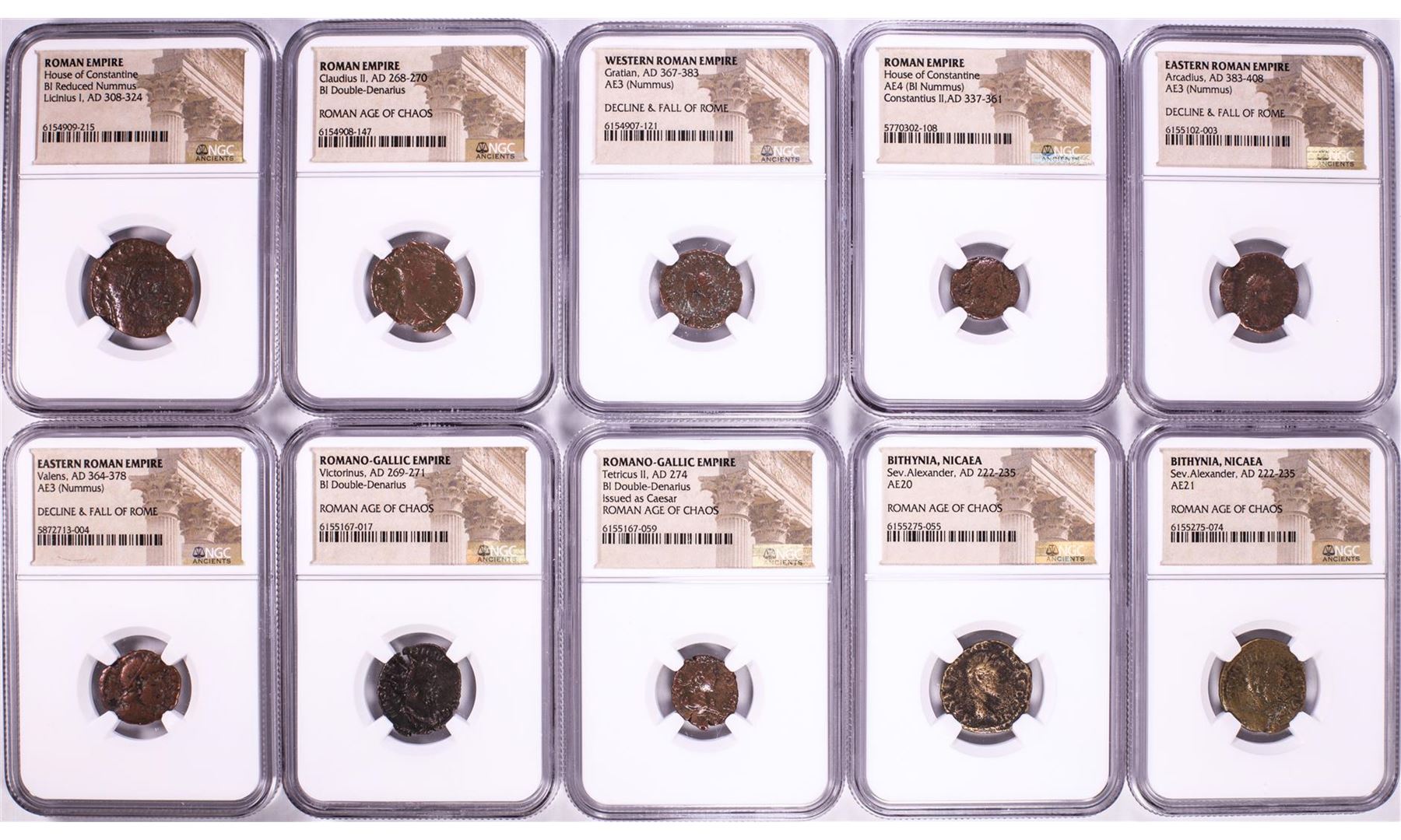 One Lot of (10) Ancient Roman Empire Coins NGC Certified. NGC Certified.