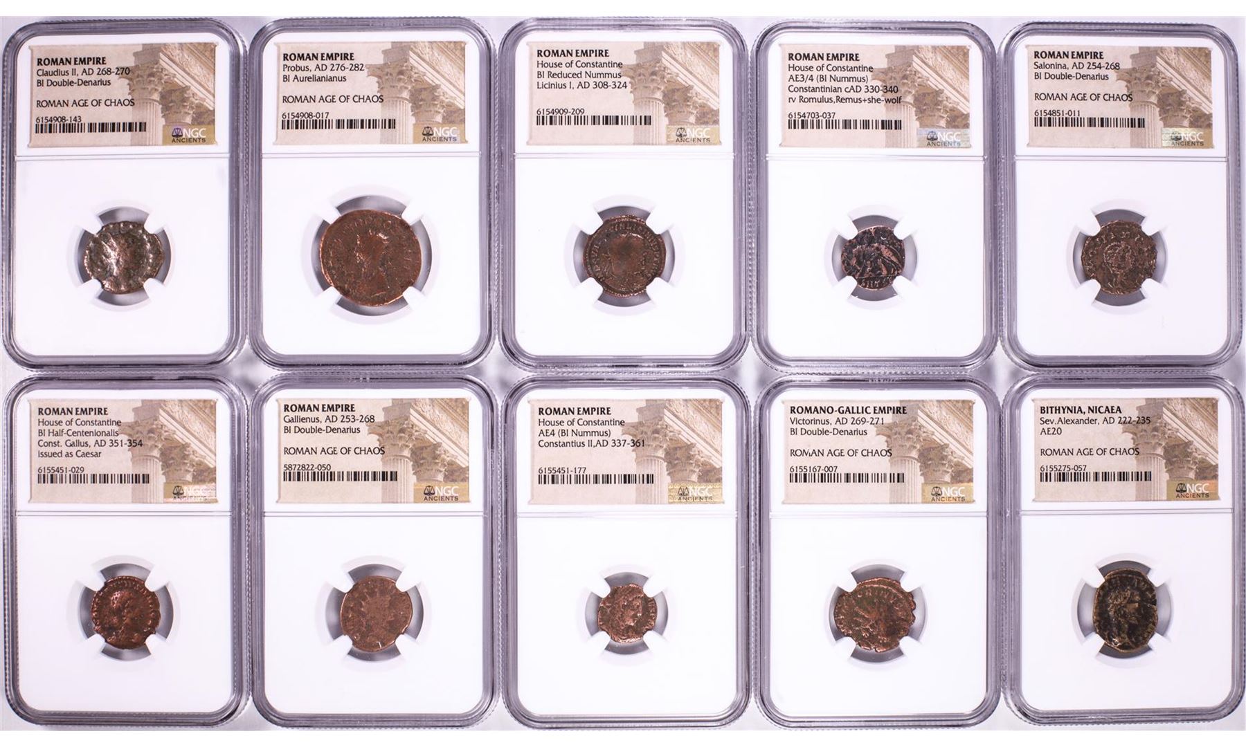 One Lot of (10) Ancient Roman Empire Coins NGC Certified. NGC Certified.
