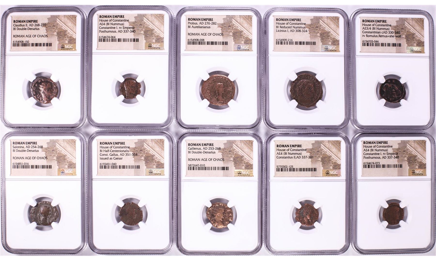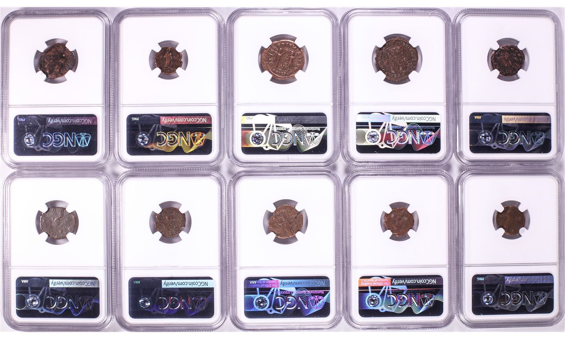 One Lot of (10) Ancient Roman Empire Coins NGC Certified. NGC Certified.