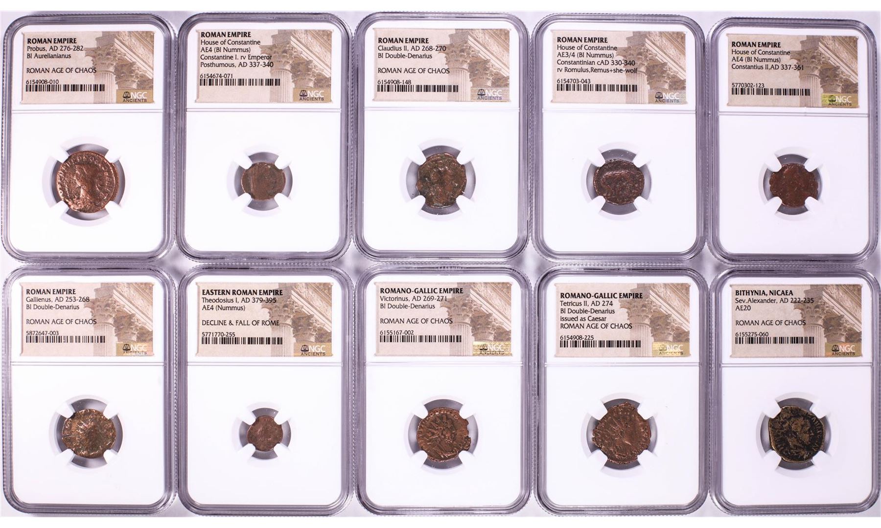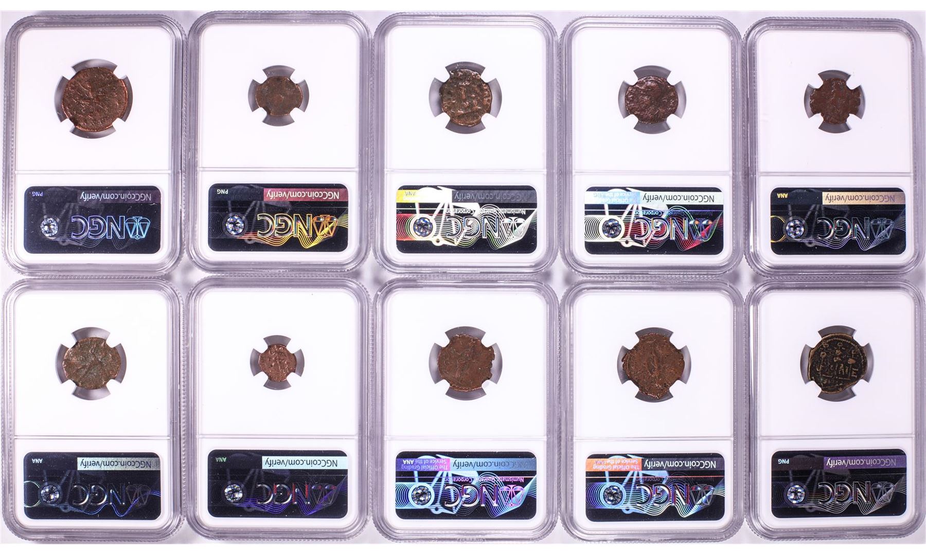 One Lot of (10) Ancient Roman Empire Coins NGC Certified. NGC Certified.