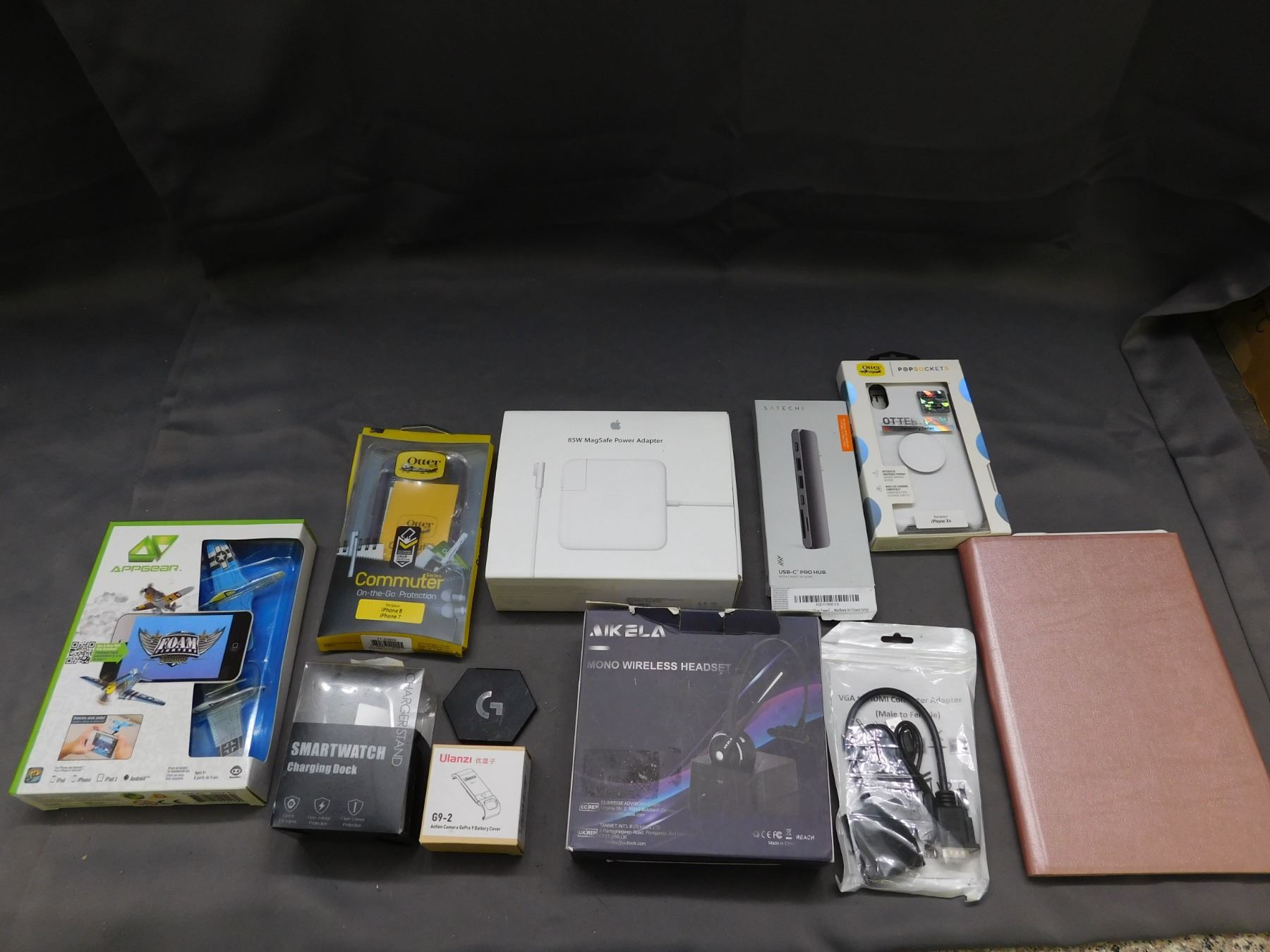 Lot of 10 Assorted Electronics, USB-C PRO HUB, Popsockets Otterbox, iMac Power, Headset, Etc