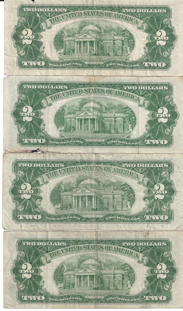 One Lot of 10 Assorted United States Red Seal $2 Bills. The images represent the lot of 10.