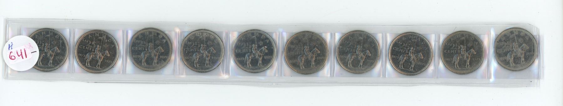 Lot of 10 Canadian quarters 1973 RCMP coins AU grade