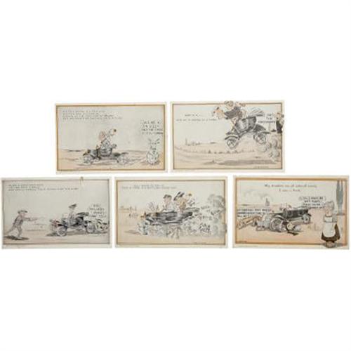 <B>Lot of 10 Cobb Shinn Ford Automobile Post Cards.</B></I> <B>S</B></I>plit back. Created from drawings by Indiana artist Cobb Shinn. Most near fine or better.<BR><BR><b>Shipping:</b> Flat Material, Small (<a target="_blank" href="http://www.heritageauctions.com/common/shipping.php">view shipping information</a>)