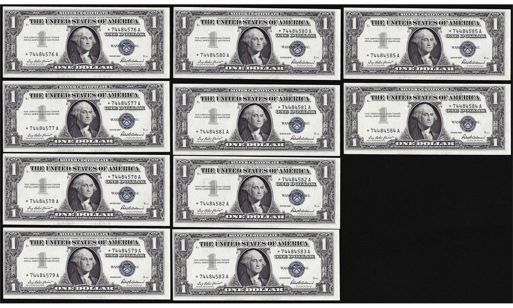Lot of (10) Consecutive Uncirculated 1957 $1 Silver Certificate Star Notes
