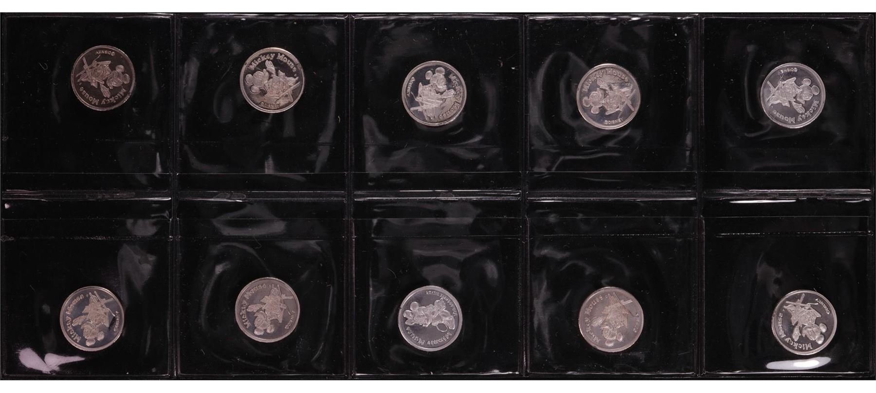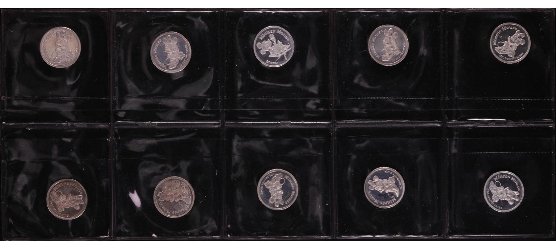 One Lot of (10) Disney Mickey & Minnie Mouse 1/20 oz. .999 Fine Silver Coin Rounds.